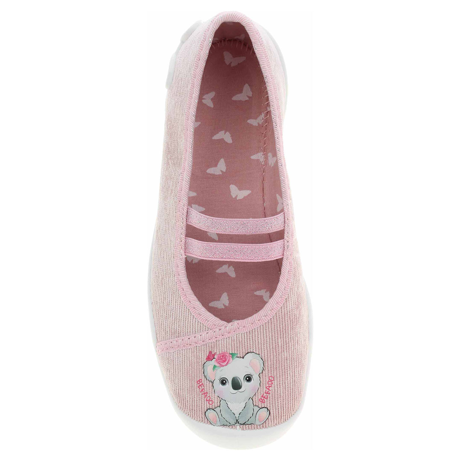 Boty Befado - dívčí domácí bačkory s textilním svrškem, podšívkou i stélkou jsou vybavené dýchající podešví. Gumičky přes nárt zajišťují pohodlné nazouvání a stabilitu nohy v obuvi. Dětská obuv - je vzhledem ke způsobu užívání vystavena většímu mechanickému poškození - okopání. Mechanické poškození není důvodem k reklamaci.