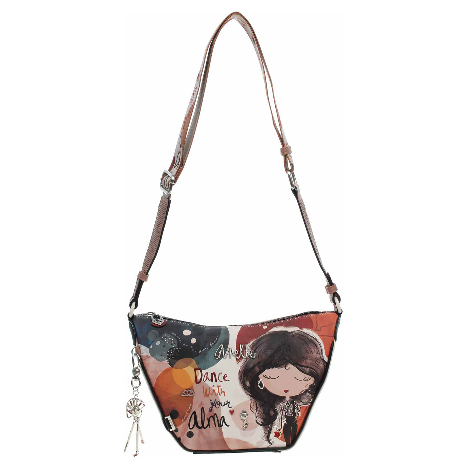 Anekke - dámská crossbody kabelka Alma se zapínáním na zip je vyrobená ze 100% polyuretanu a podšívka je ze 100% polyesteru. Na zadní straně je kapsa se zipem. Regulovatelný popruh (max délka 125 cm) se nedá odepnout. Formát A4 se nevejde. Rozměry: 28/15 x 17 x 10 cm. Vnitřní výbava: 1x kapsa se zipem, 1x kapsa bez zapínání. Nechybí ikonický přívěsek Anekke. Baleno v praktickém dustbagu. Anekke - I´m eco-friendly.