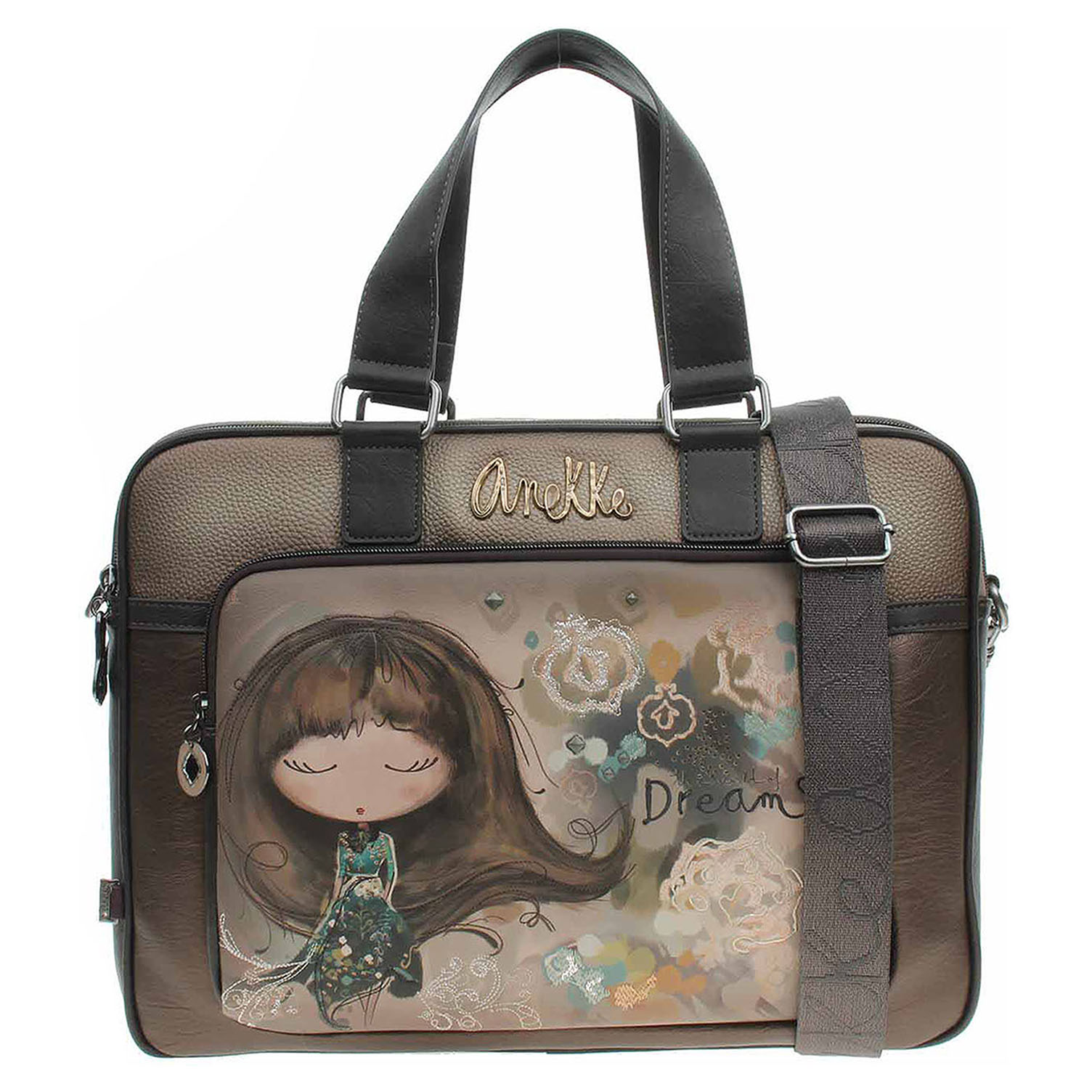 Anekke - dámská taška Real na doklady s polstrovanou kapsou na laptop/tablet (rozměr: 30 x 22 cm) je vyrobená ze 100% polyuretanu s podšívkou ze 100% polyesteru a zapíná se na zip, Tašku je možno nosit v ruce (výška ucha 18 cm) nebo přes rameno na regulovatelném popruhu s karabinkami, který se dá odepnout (max délka 135 cm). Rozměry: 40 x 30 x 9 cm. Formát A4 se vejde. Díky "kapse" na zadní straně lze tašku nasadit na držadlo kufru pro pohodlné cestování. Vnitřní výbava: 1x kapsa se zipem, 2x kapsička bez zapínání. Nechybí ikonický přívěsek Anekke. Baleno v praktickém dustbagu. Anekke - I´m eco-friendly.