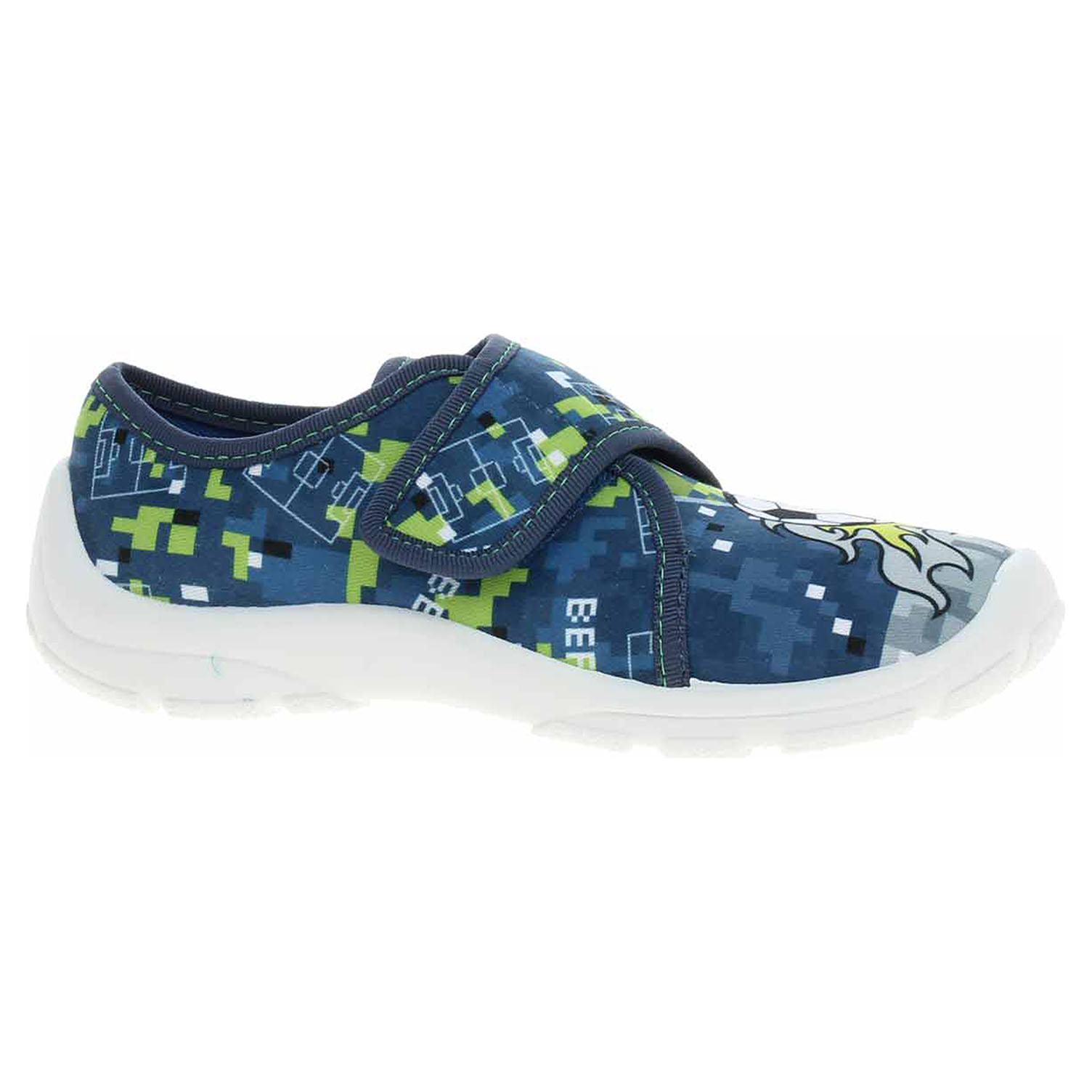Boty Befado - chlapecké domácí bačkory s textilním svrškem, podšívkou i stélkou. Obuv je vybavená vyměkčenou stélkou Soft-B systém a dýchající podešví. Pásek přes nárt, který se zapíná na suchý zip, zajišťuje pohodlné nazouvání a stabilitu nohy v obuvi. Dětská obuv - je vzhledem ke způsobu užívání vystavena většímu mechanickému poškození - okopání. Mechanické poškození není důvodem k reklamaci.