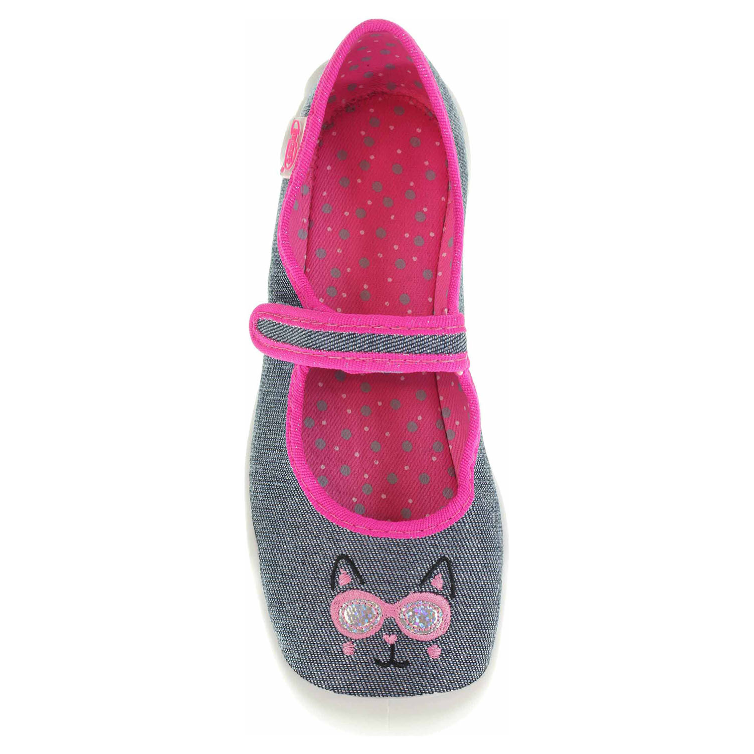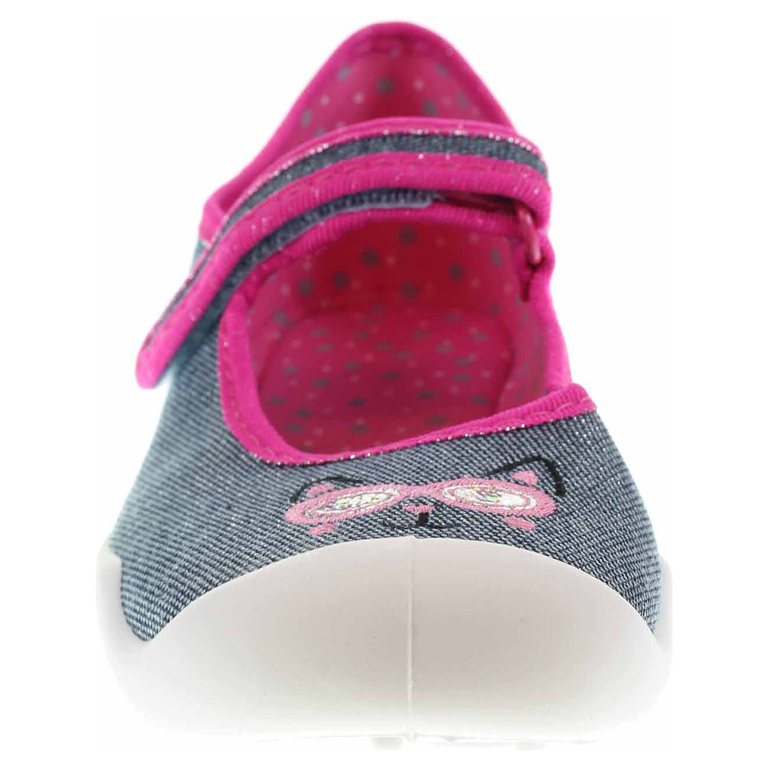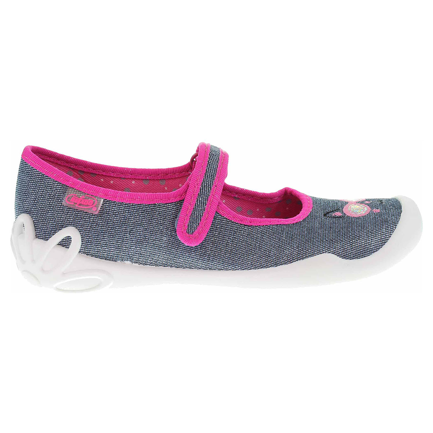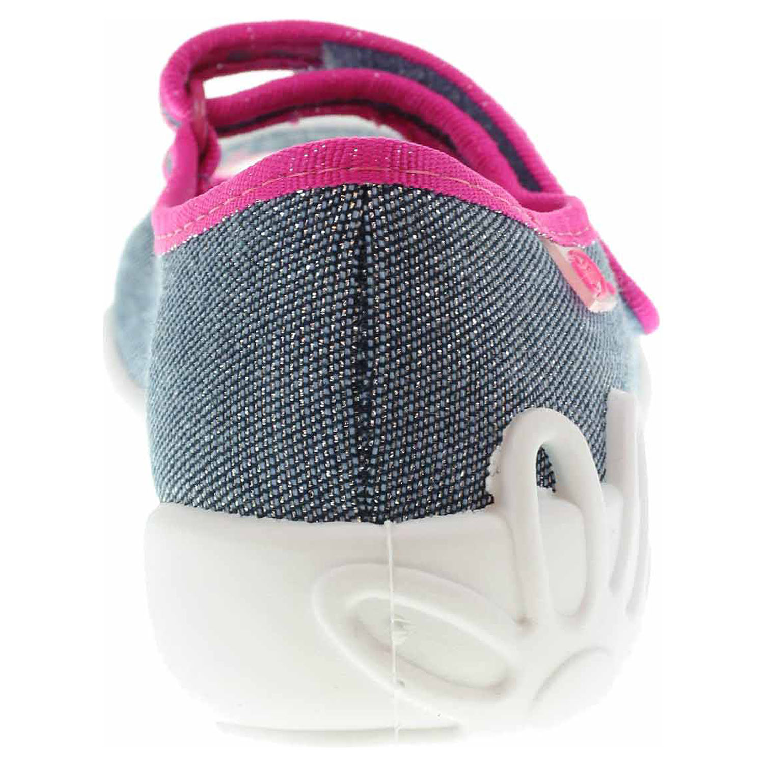 Boty Befado - dívčí domácí bačkory s textilním svrškem i podšívkou jsou vybavené vyměkčenou stélkou Soft-B systém a dýchající podešví. Pásek přes nárt, který se zapíná na suchý zip, zajišťuje pohodlné nazouvání a stabilitu nohy v obuvi. Dětská obuv - je vzhledem ke způsobu užívání vystavena většímu mechanickému poškození - okopání. Mechanické poškození není důvodem k reklamaci.