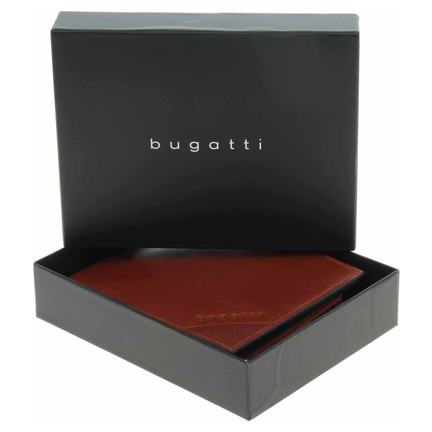 Bugatti - pánská rozkládací peněženka z usně a s textilní podšívkou je vybavená přihrádkami na karty, na bankovky a kapsou na mince, která se zapíná na patent. Vaše karty v pouzdře jsou chráněné proti nechtěnému čtení technologií RFID. Rozměry peněženky - 12 x 10 x 2 cm.