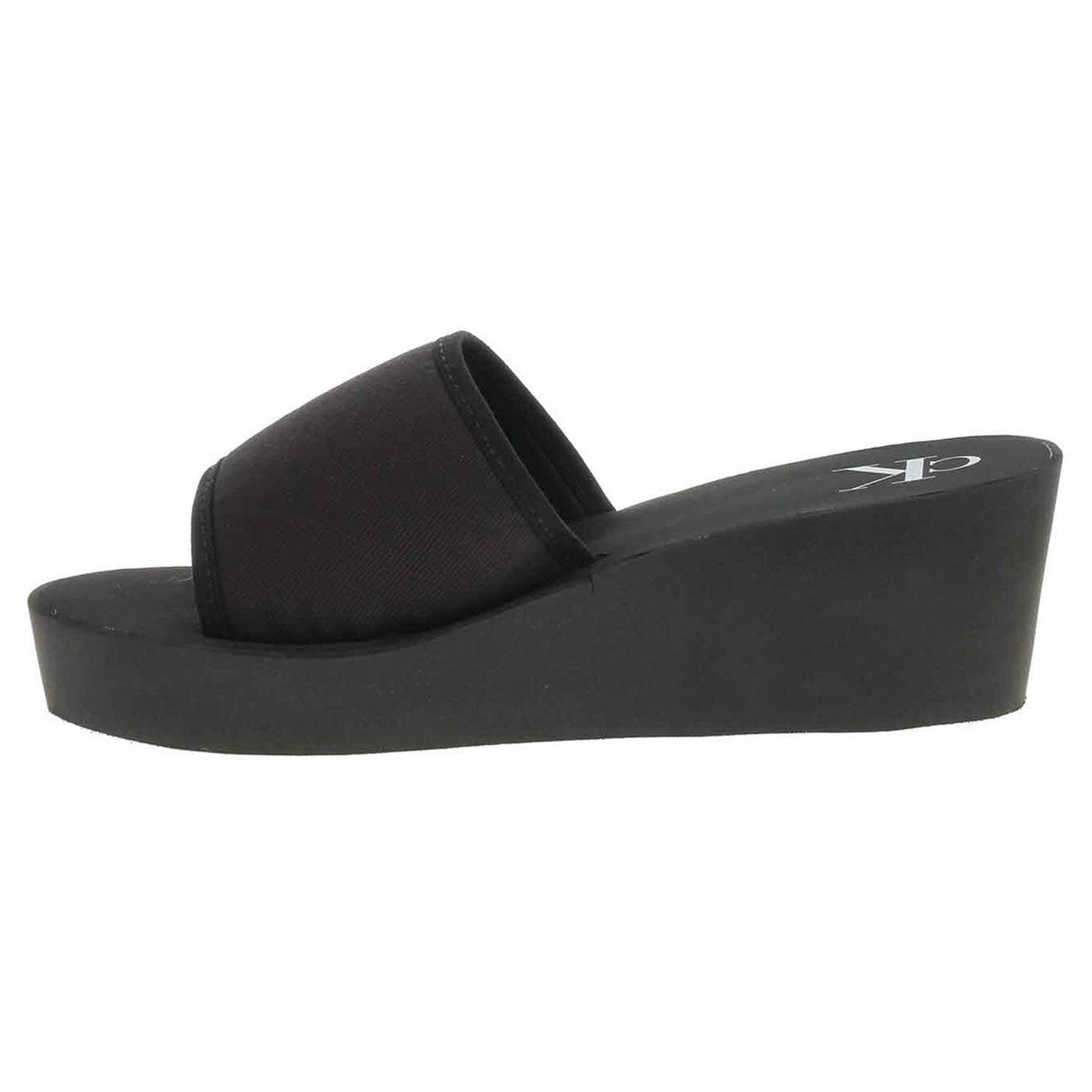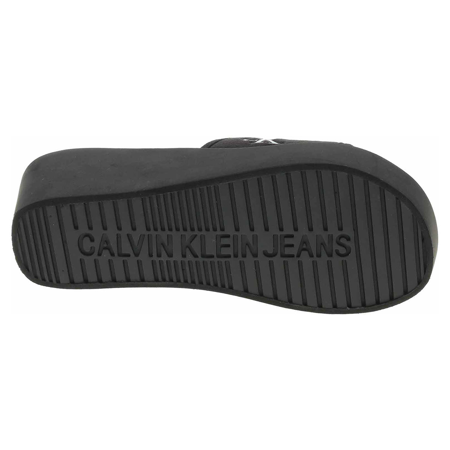 Boty Calvin Klein - plážové dámské pantofle s textilním svrškem (95% recyklovaná bavlna) a se stélkou ze synteiky mají klínek vysoký 6,- cm. Platforma je vysoká 2,5 cm. Plážová obuv - je určena k rekreačním účelům v okolí koupališť, jezer a mořských pláží. Obuv není vhodná při chůzi na tvrdém povrchu - chodník, silnice.