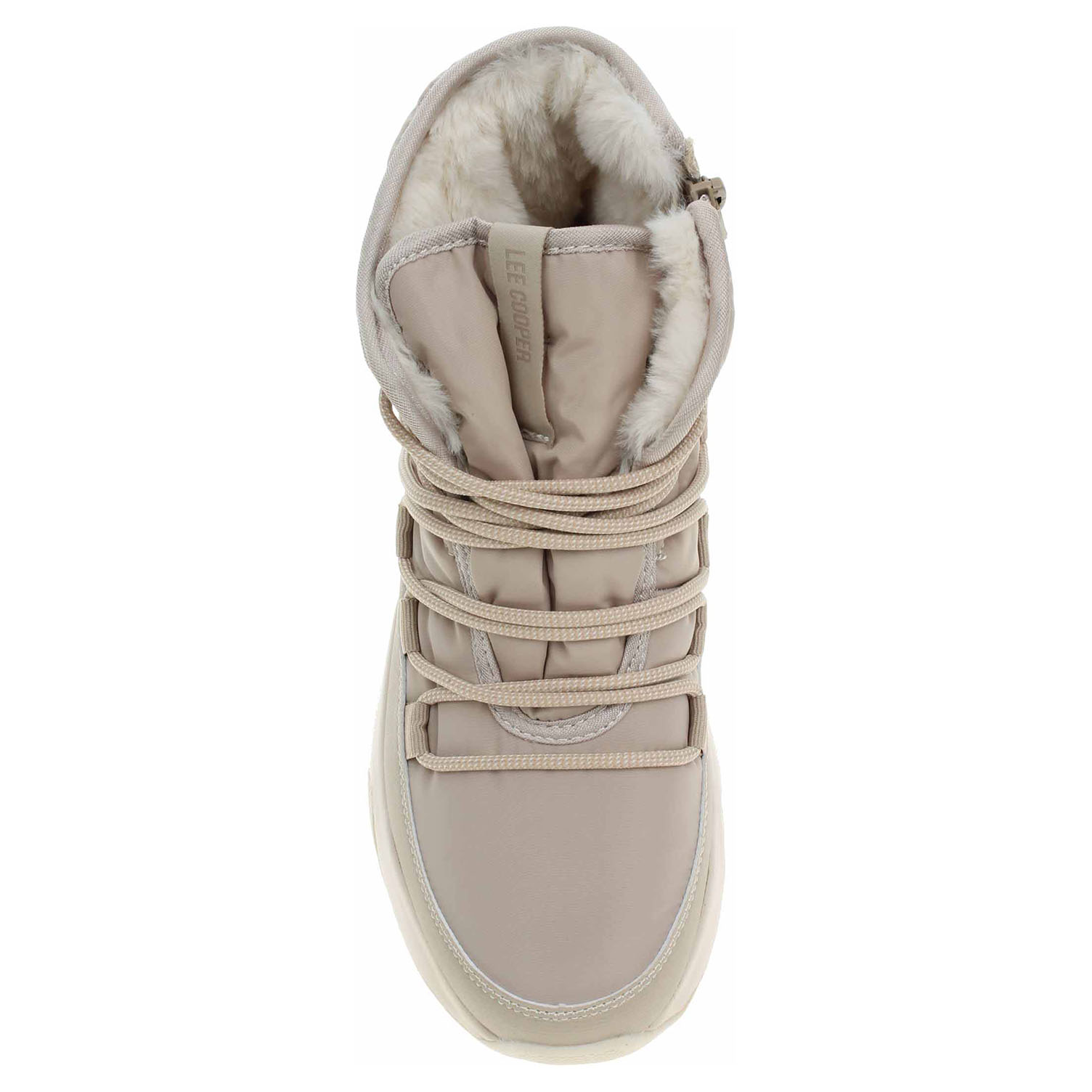 Boty Lee Cooper - lepená dámská kotníková obuv se svrškem kombinovaným syntetika/textil a s textilní stélkou je vyteplená textilní podšívkou s jemným chloupkem. Pohodlné nazouvání zajišťuje šněrování a zip na vnitřní straně. Klínek je vysoký 4,- cm a platforma je vysoká 2,- cm. Lepená obuv - pevnost lepeného spoje může být negativně ovlivněna promáčením nebo propocením, event. opakovaným používáním nedostatečně vysušené obuvi. Při neopatrné chůzi může dojít k mechanickému uvolnění lepeného spoje - ukopnutí.
