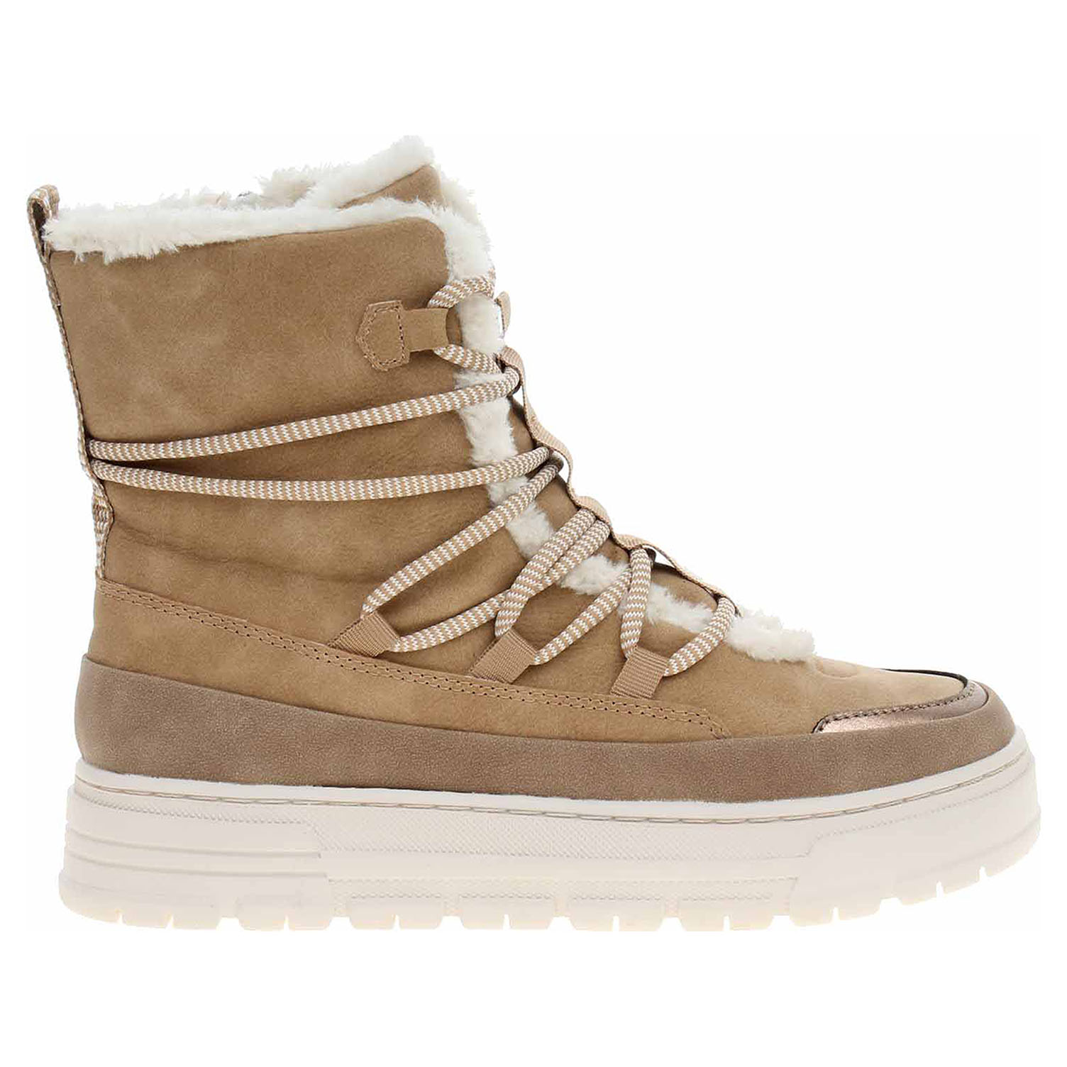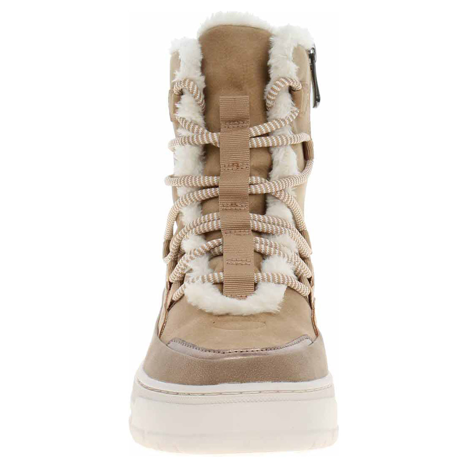 Boty Marco Tozzi - lepená dámská kotníková obuv se svrškem ze syntetiky je vybavená vyměkčenou textilní stélkou Feel Me, která se přizpůsobuje vašemu chodidlu a zajišťuje optimální komfort při chůzi. Obuv je vyteplená textilní podšívkou s jemným chloupkem. Pohodlné nazouvání zajišťuje šněrování na nártu a zip na vnitřní straně. Podpatek vysoký 4,- cm a platforma je vysoká 2,- cm. Obuv je 100% VEGAN = při výrobě obuvi nebyly použity žádné materiály ze zvířat. Lepená obuv - pevnost lepeného spoje může být negativně ovlivněna promáčením nebo propocením, event. opakovaným používáním nedostatečně vysušené obuvi. Při neopatrné chůzi může dojít k mechanickému uvolnění lepeného spoje - ukopnutí.