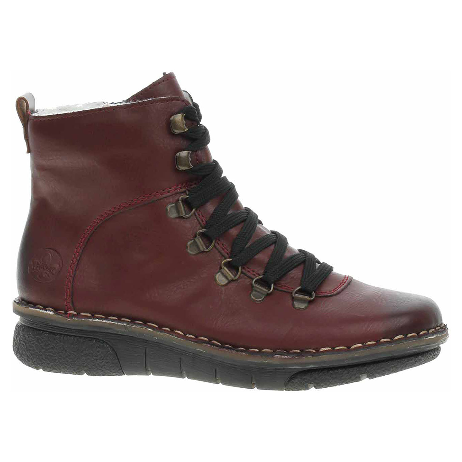 Boty Rieker - flexiblová dámská kotníková obuv se svrškem ze syntetiky a s textilní, vyměkčenou stélkou je vyteplená textilní podšívkou s chlupem. Pohodlné nazouvání zajišťuje zip na vnitřní straně a šněrování na nártu. Klínek je vysoký 3,8 cm a platforma je vysoká 2,- cm. Podešev je flexibilní a díky systému Antistress skvěle tlumí nárazy a otřesy. Flexiblová obuv - prošívaná podešev, obuv používejte v suchém prostředí. Při zvýšené vlhkosti může dojít k promáčení obuvi. Obuv pravidelně impregnujte nebo krémujte, zvláště pak prošívaný okraj.