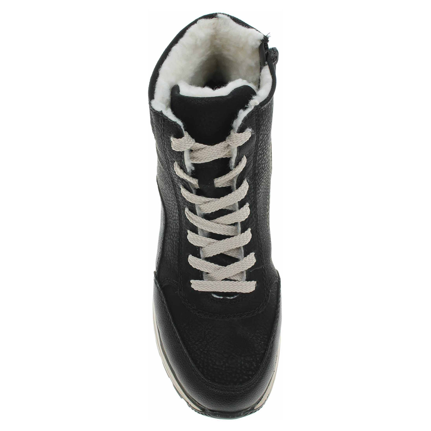 Boty Rieker - lepená dámská kotníková obuv se svrškem ze syntetiky a s textilní stélkou je vyteplená textilní podšívkou s jemným chloupkem. Obuv je vybavená vyndavací stélkou a pro pohodlné nazouvání šněrováním a zipem na vnitřní straně. Vložky do bot je možné vyndat za účelem provětrání a omytí. Značnou výhodu nabízejí vyměnitelné vložky do bot také těm uživatelům, kteří používají ortopedické vkládací stélky. Klínek je vysoký 4,- cm a platforma je vysoká 3,- cm. Podešev je flexibilní a díky systému Antistress skvěle tlumí nárazy a otřesy. Lepená obuv - pevnost lepeného spoje může být negativně ovlivněna promáčením nebo propocením, event. opakovaným používáním nedostatečně vysušené obuvi. Při neopatrné chůzi může dojít k mechanickému uvolnění lepeného spoje - ukopnutí.