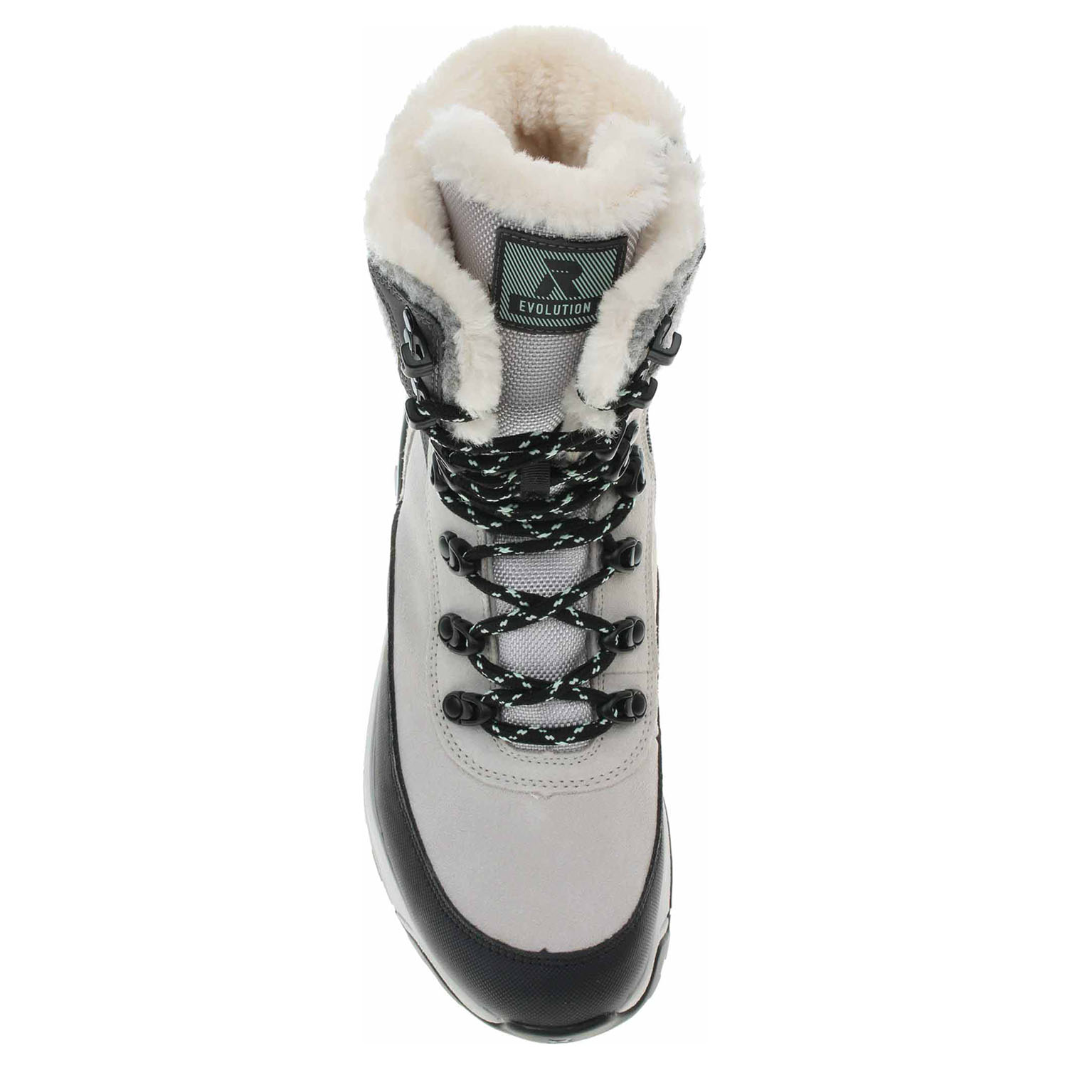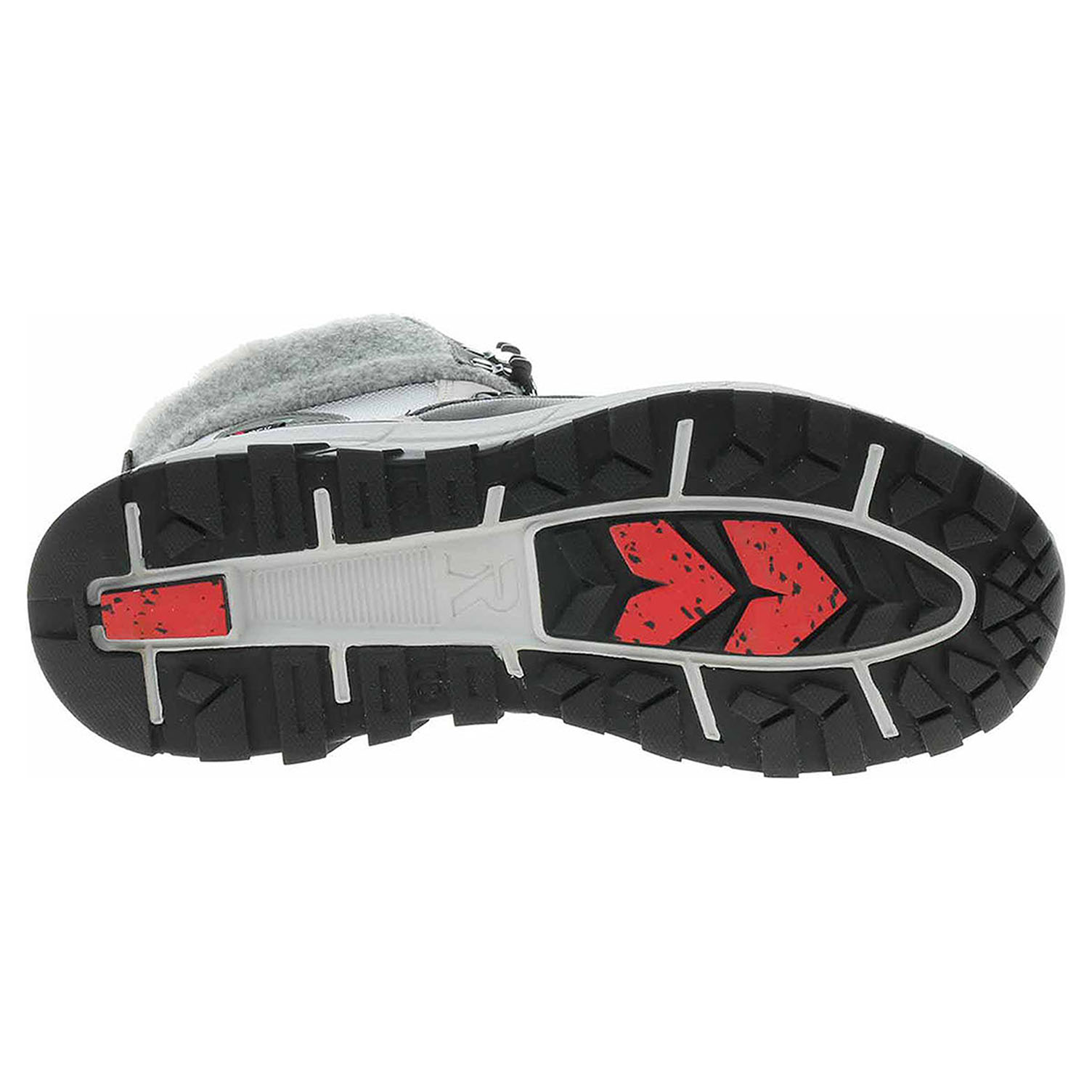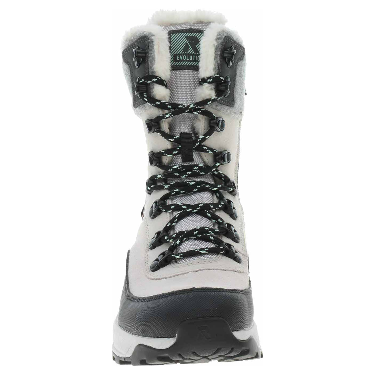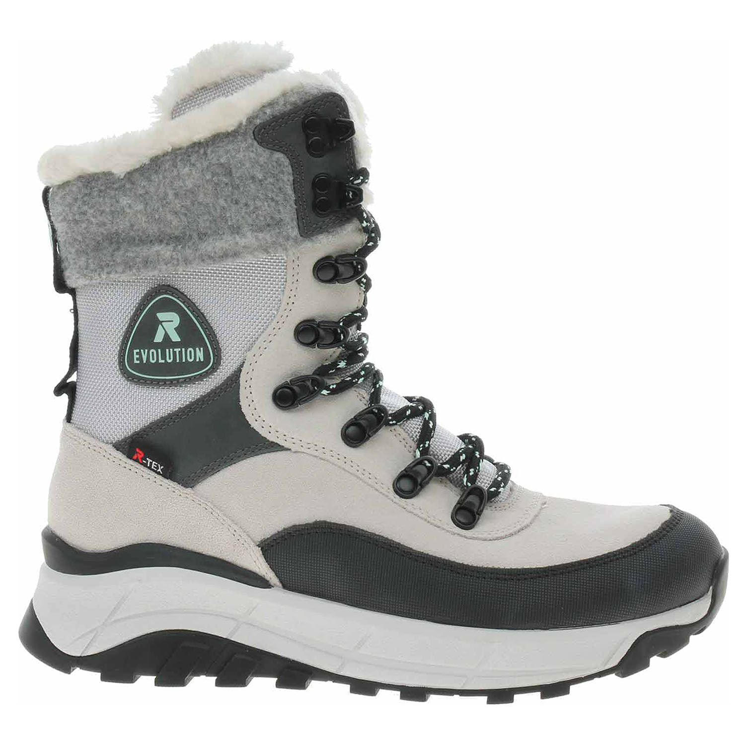 Boty Rieker - lepená dámská kotníková obuv řady R-EVOLUTION se svrškem kombinovaným useň/textil a se špičkou chráněnou syntetikou je vyteplená podšívkou z vlny a je vybavená vyndavací pěnovou stélkou Walk Warm (složení: vlněná nášlapná vrstva, termoizolační fólie a patní absorbér), kterou můžete vyjmout, vyměnit nebo vyvětrat, a vodoodpudivou membránou R-TEX®. Pohodlné nazouvání zajišťuje zip na vnitřní straně a šněrování na nártu. Rieker REVOLUTION je nová řada moderní sportovní obuvi s obrovským důrazem na použité technologie a na komforní pohodlí i při celodenním nošení. Walk Safe - Fiber Grip Sole = skrytá funkce s velkým efektem. Speciální podrážka ze skleněných vláken, poskytuje extra přilnavost na zledovatělém povrchu. Už nikdy neuklouznete. Podešev je flexibilní a díky systému Antistress skvěle tlumí nárazy a otřesy. Podpatek je vysoký 4,5 cm a platforma je vysoká 2,5 cm. Lepená obuv - pevnost lepeného spoje může být negativně ovlivněna promáčením nebo propocením, event. opakovaným používáním nedostatečně vysušené obuvi. Při neopatrné chůzi může dojít k mechanickému uvolnění lepeného spoje - ukopnutí.
