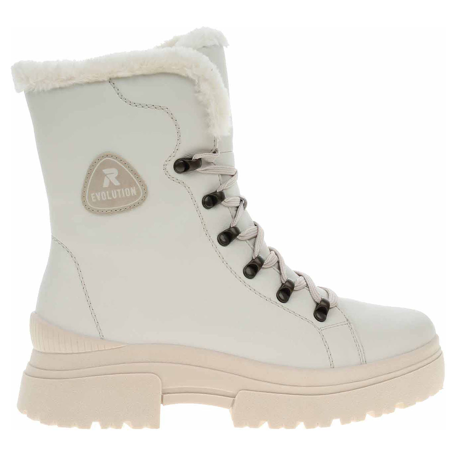 Boty Rieker - lepená dámská kotníková obuv řady R-EVOLUTION se svrškem z usně a s podšívkou kombinovanou jehněčí kožešina/střižní ovčí vlna je vybavená vyndavací stélkou Walk Warm z paměťové pěny (složení: vlněná nášlapná vrstva, termoizolační fólie a patní absorbér), kterou můžete vyjmout, vyměnit nebo vyvětrat. Pohodlné nazouvání zajišťuje zip na vnitřní straně a šněrování na nártu. Rieker REVOLUTION je nová řada moderní sportovní obuvi s obrovským důrazem na použité technologie a na komforní pohodlí i při celodenním nošení. Podešev je flexibilní a díky systému Antistress skvěle tlumí nárazy a otřesy. Podpatek je vysoký 4,- cm a platforma je vysoká 2,5 cm. Lepená obuv - pevnost lepeného spoje může být negativně ovlivněna promáčením nebo propocením, event. opakovaným používáním nedostatečně vysušené obuvi. Při neopatrné chůzi může dojít k mechanickému uvolnění lepeného spoje - ukopnutí.
