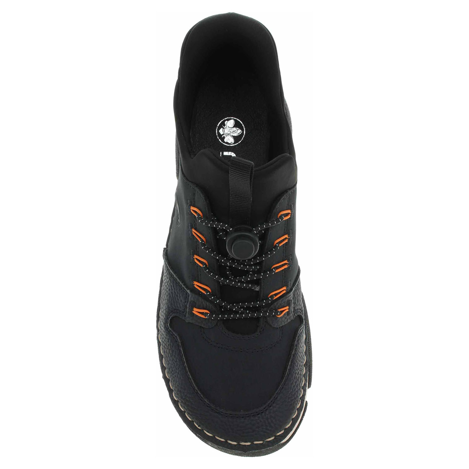 Boty Rieker - flexiblová dámská vycházková obuv se svrškem kombinovaným syntetika/textil a s textilní podšívkou je vybavená stélkou MemoSoft s nášlapnou vrstvou z usně. Pohodlné nazutí i vyzutí obuvi bez použití rukou zajišťuje systém Ready2GO = polstrovaný patní panel a textilní ponožkový nástup do obuvi. Šněrováním je provlečená elastická gumička s brzdičkou. Klínek je vysoký 3,5 cm. Podešev je flexibilní a díky systému Antistress (lehkost, pružnost, prostornost a vynikající absorpce nárazů) Vám obuv zajistí pohodlí při každém kroku. Flexiblová obuv - prošívaná podešev, obuv používejte v suchém prostředí. Při zvýšené vlhkosti může dojít k promáčení obuvi. Obuv pravidelně impregnujte nebo krémujte, zvláště pak prošívaný okraj.
