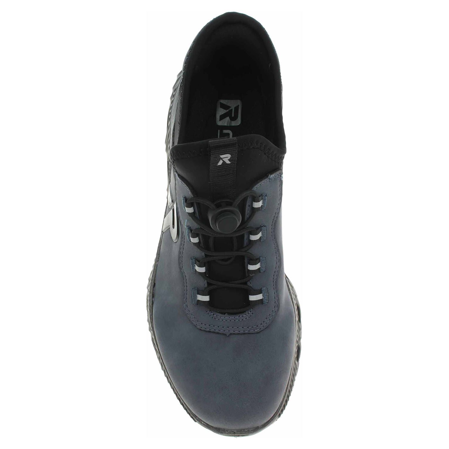 Boty Rieker - lepená dámská vycházková obuv se svrškem kombinovaným syntetika/textil a s textilní podšívkou je vybavená stélkou MemoSoft s textilní nášlapnou vrstvou. Pohodlné nazutí i vyzutí obuvi bez použití rukou zajišťuje systém Ready2GO = polstrovaný patní panel a textilní ponožkový nástup do obuvi. Rieker Light - kombinace lehké podešve a měkké stélky zajistí pocit chůze po oblacích. Šněrováním je provlečená elastická gumička s brzdičkou. Klínek je vysoký 3,8 cm. Podešev je flexibilní a díky systému Antistress (lehkost, pružnost, prostornost a vynikající absorpce nárazů) Vám obuv zajistí pohodlí při každém kroku. Lepená obuv - pevnost lepeného spoje může být negativně ovlivněna promáčením nebo propocením, event. opakovaným používáním nedostatečně vysušené obuvi. Při neopatrné chůzi může dojít k mechanickému uvolnění lepeného spoje - ukopnutí.