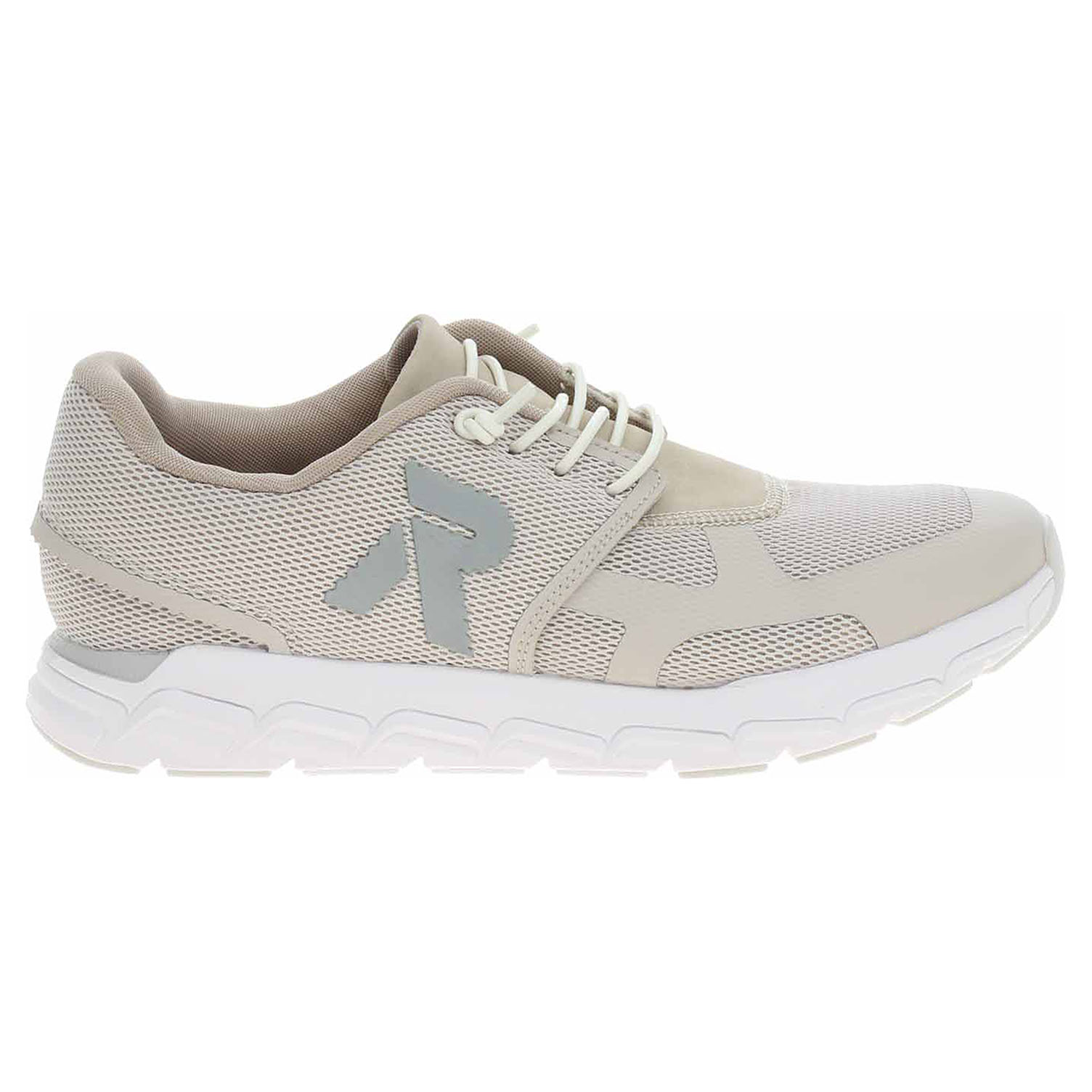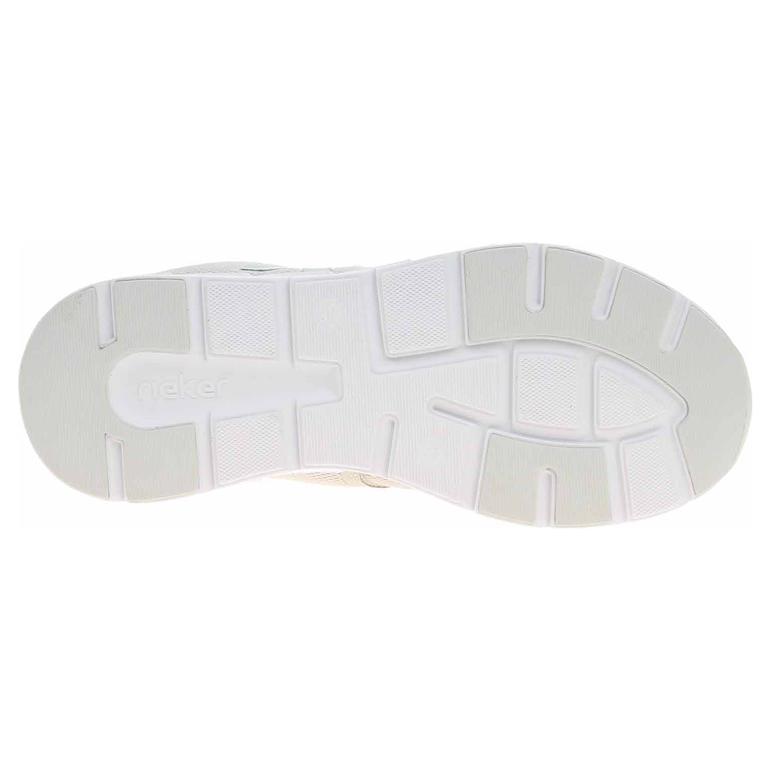 Boty Rieker - rekreační dámská vycházková obuv se svrškem kombinovaným textil/syntetika a s textilní podšívkou je vybavená vyndavací stélkou RiekerSoft s textilní nášlapnou vrstvou. Šněrováním je provlečená elastická gumička, kterou je možno vyměnit za klasické tkaničky. Vložky do bot je možné vyndat za účelem provětrání a omytí. Značnou výhodu nabízejí vyměnitelné vložky do bot také těm uživatelům, kteří používají ortopedické vkládací stélky. Klínek je vysoký 3,- cm. Podešev je flexibilní a díky systému Antistress skvěle tlumí nárazy a otřesy. Rekreační obuv - je vhodná pro rekreačně-vycházkové příležitosti. Není určená k provozování sportovních aktivit. Obuv není vhodná pro každodenní používání.