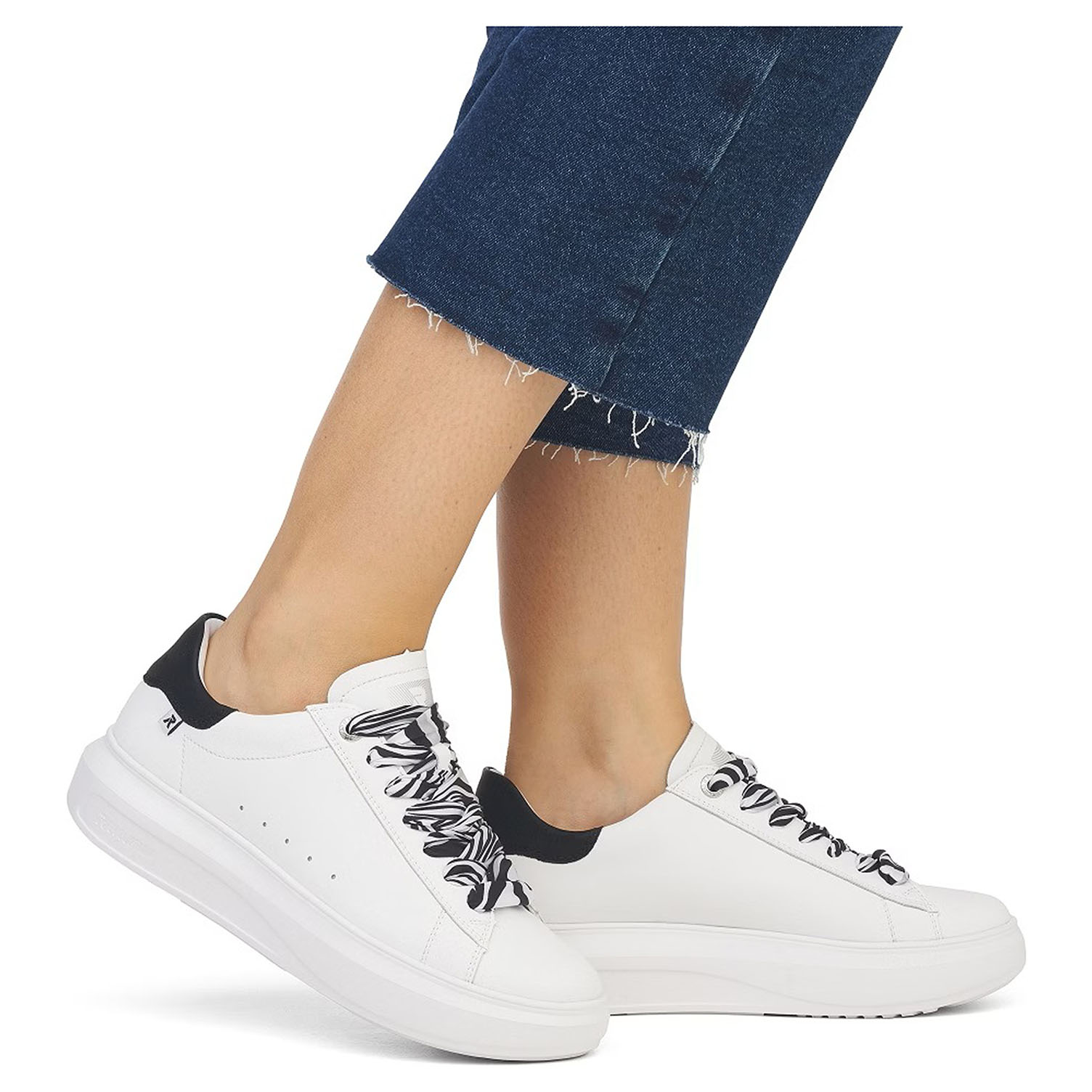 Boty Rieker - lepená dámská obuv se šněrováním má svršek z povrstvené usně a textilní podšívku a je vybavená vyndavací stélkou s textilní nášlapnou vrstvou. RevolutionSoft – unikátní stélka z paměťové pěny, která změkčuje došlap, maximálně se přizpůsobí tvaru Vašeho chodidla, ale zároveň ji můžete vyjmout, vyměnit nebo vyvětrat. Klínek je vysoký 3,5 cm. K obuvi 1x bílé tkaničky navíc. Lepená obuv - pevnost lepeného spoje může být negativně ovlivněna promáčením nebo propocením, event. opakovaným používáním nedostatečně vysušené obuvi. Při neopatrné chůzi může dojít k mechanickému uvolnění lepeného spoje - ukopnutí.