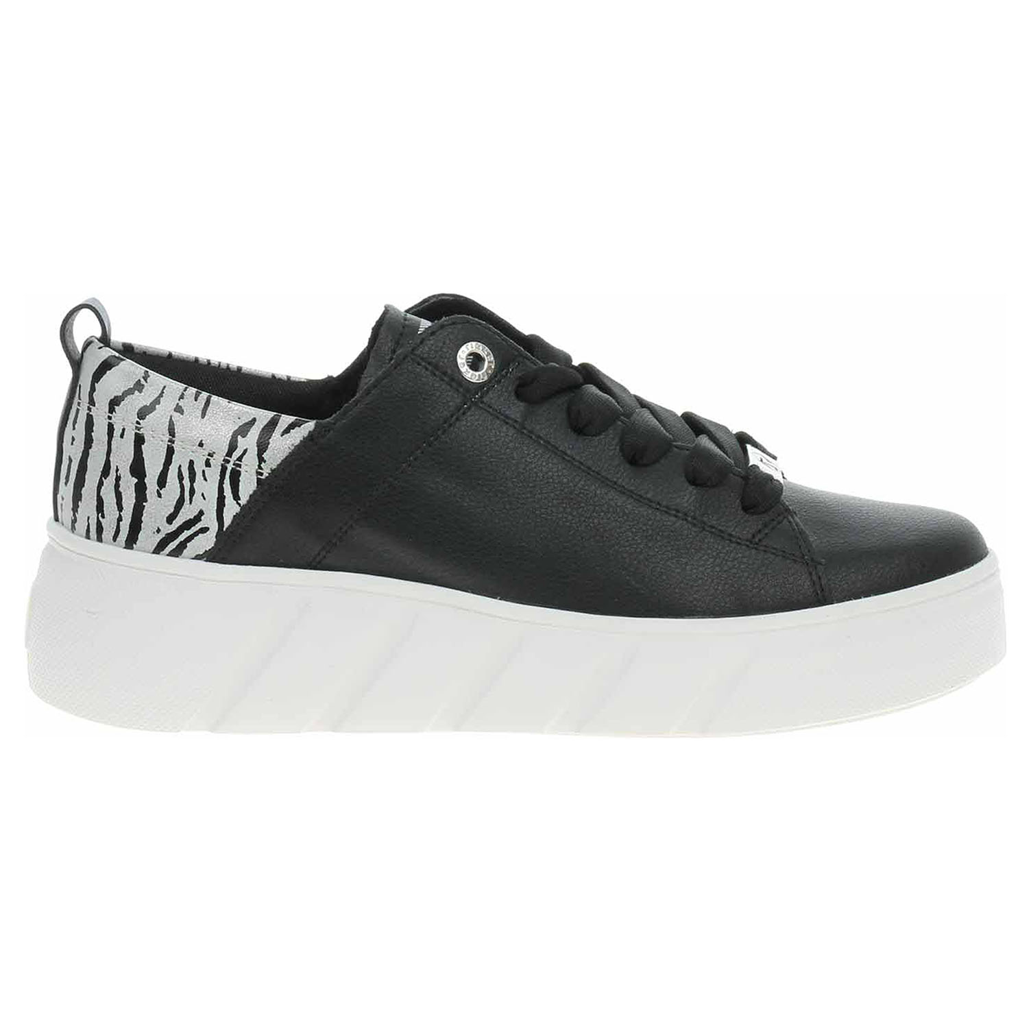 Boty Rieker - lepená dámská obuv se svrškem kombinovaným useň/syntetika a s textilní podšívkou je vybavená paměťovou stélkou Rieker Soft, která maximálně změkčuje došlap a zvyšuje pohodlí v obuvi. Vyměnitelné vložky do bot s textilní nášlapnou vrstvou je možné vyndat za účelem provětrání a omytí. Značnou výhodu nabízejí vyměnitelné vložky do bot také těm uživatelům, kteří používají ortopedické vkládací stélky. Pohodlné nazouvání zajišťuje šněrování na nártu. Lehká podešev Rieker Light má klínek vysoký 4,5 cm a platforma je vysoká 3,- cm. Podešev je flexibilní a díky systému Antistress skvěle tlumí nárazy a otřesy. Lepená obuv - pevnost lepeného spoje může být negativně ovlivněna promáčením nebo propocením, event. opakovaným používáním nedostatečně vysušené obuvi. Při neopatrné chůzi může dojít k mechanickému uvolnění lepeného spoje - ukopnutí.