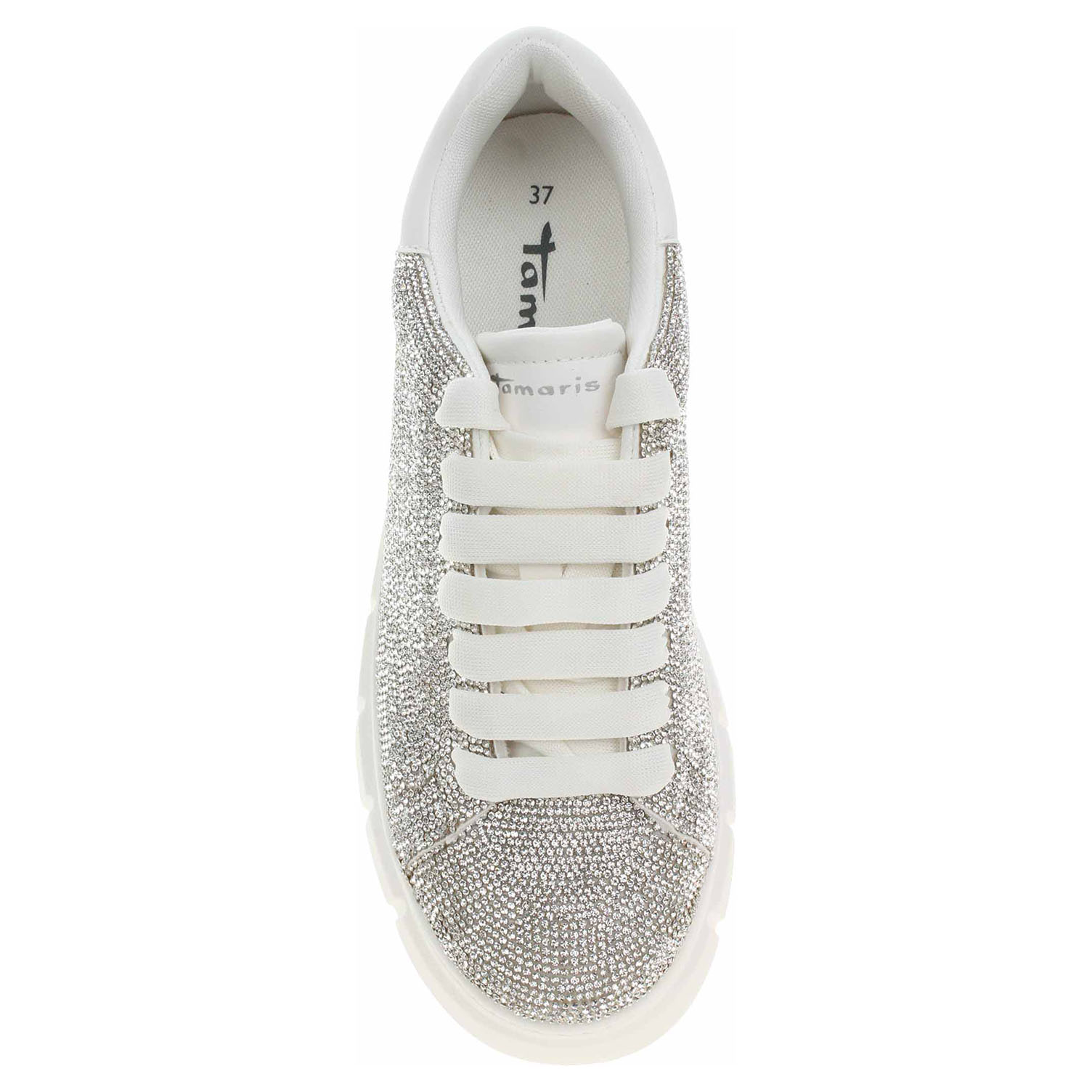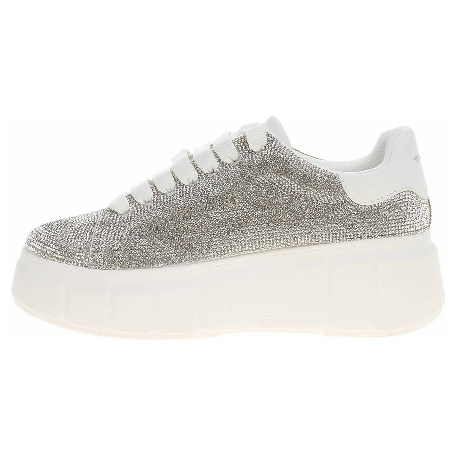 Boty Tamaris - módní dámská obuv se šněrováním má svršek kombinovaný textil/syntetika pokrytý kamínky, textilní podšívku a je vybavená paměťovou stélkou Touch it s nášlapnou vrstvou z textilu. Vyměkčená stélka se přizpůsobuje vašemu chodidlu a zajišťuje při chůzi optimální komfort. Klínek je vysoký 6,- cm a platforma je vysoká 3,5 cm. Obuv je 100% VEGAN = při výrobě obuvi nebyly použity žádné materiály ze zvířat. Módní obuv - je určena pro krátkodobé nošení v nenáročných podmínkách. Prvořadá je módnost nikoliv životnost. Obuv není vhodná pro každodenní používání.