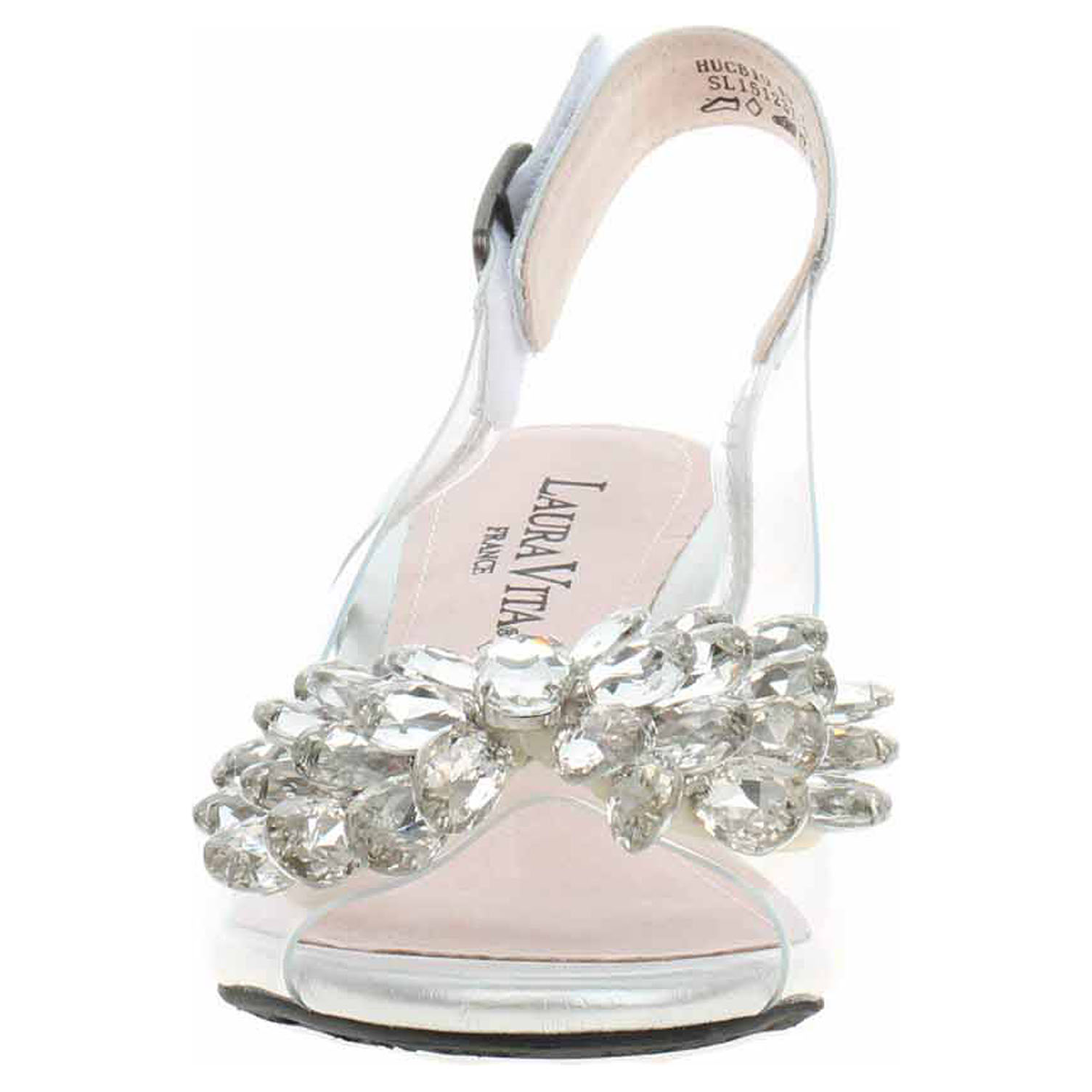 Laura Vita Hucbio 40 - společenská dámská obuv s transparentním svrškem ze syntetiky (80% PVC + 20% polyuretan)) a se stélkou s nášlapnou vrstvou z usně má podpatek vysoký 5,- cm. Pásek přes patu se zapíná na přezku. Společenská obuv - vhodná ke krátkodobému nošení v interiérech. Obuv nevystavujte vlhkosti.