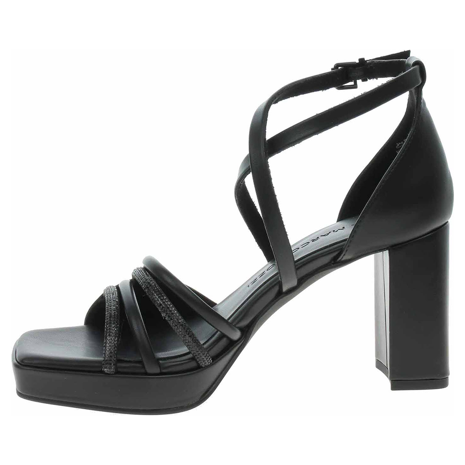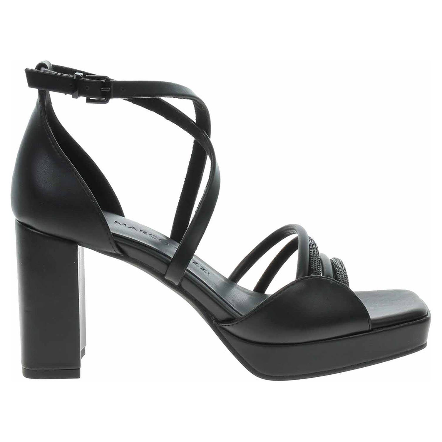 Boty Marco Tozzi - společenská dámská obuv se svrškem ze syntetiky, s textilní podšívkou a se stélkou s nášlapnou vrstvou ze syntetiky má podpatek vysoký 8,5 cm. Vyměkčená stélka Feel me se přizpůsobuje vašemu chodidlu a zajišťuje optimální komfort při chůzi. Pásek přes kotník se zapíná na přezku. Společenská obuv - vhodná ke krátkodobému nošení v interiérech. Obuv nevystavujte vlhkosti.