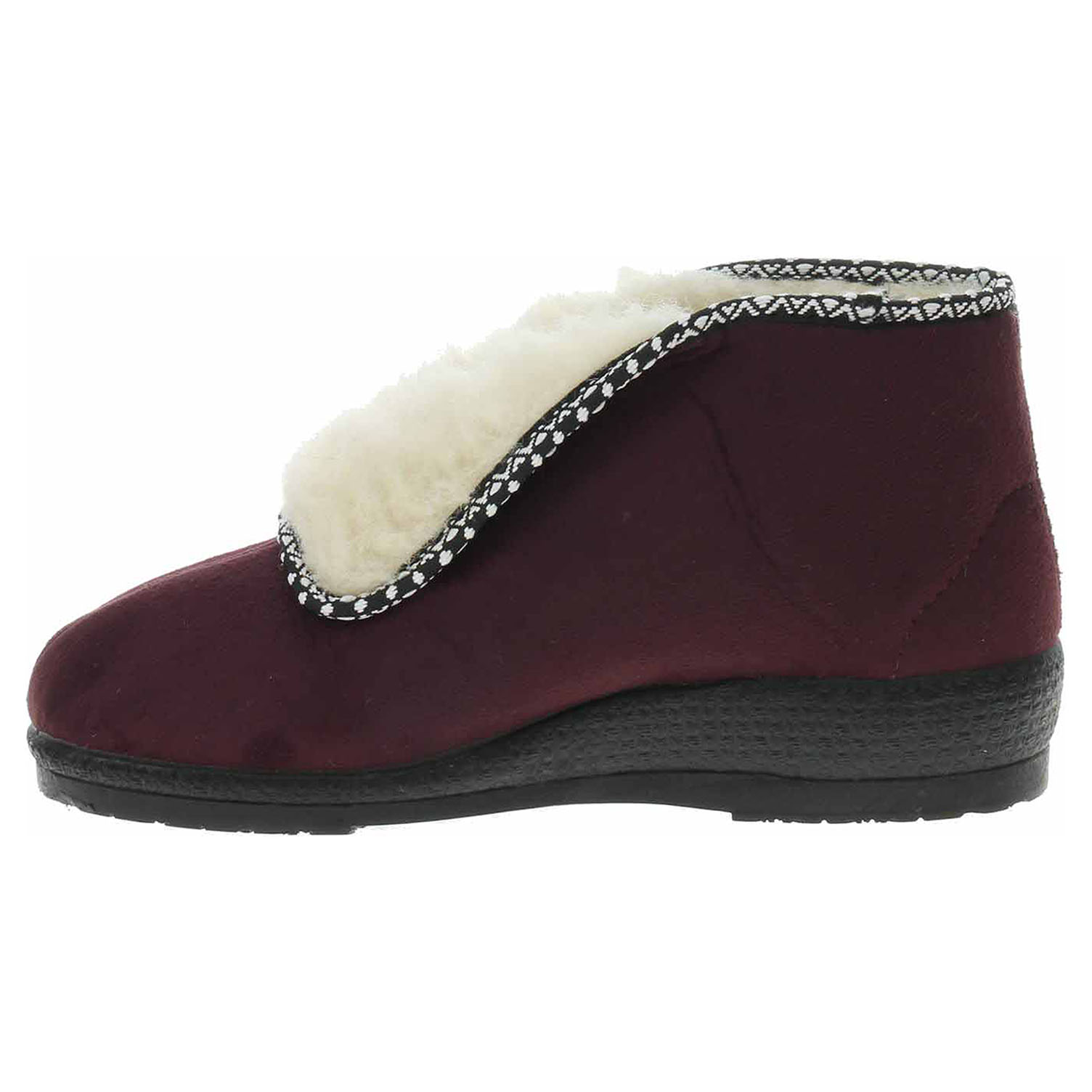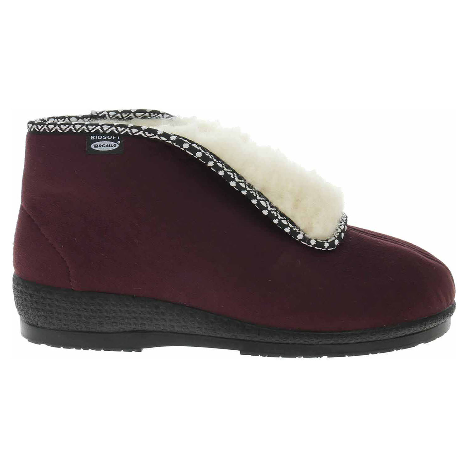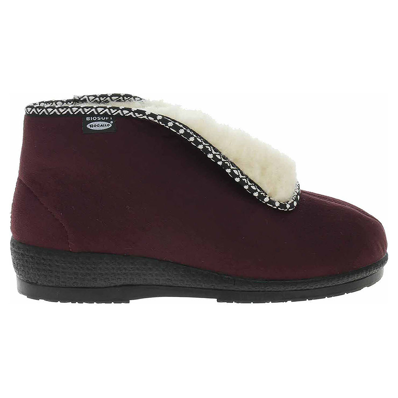 Boty Rogallo - dámské kotníkové bačkory s textilním svrškem jsou vyteplené textilní podšívkou s jemným chloupkem. Klínek je vysoký 3,5 cm.