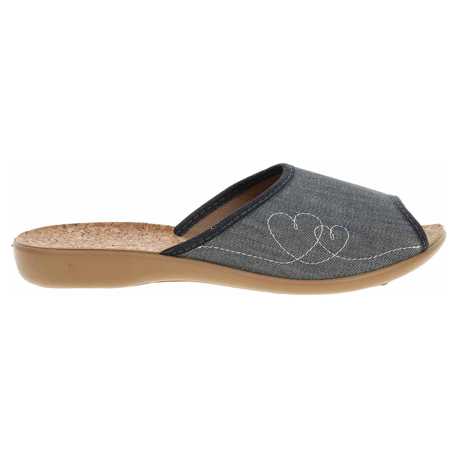 Boty Befado - dámské domácí pantofle s otevřenou špičkou na klínku vysokém 2,- cm. Svršek, podšívka i stélka jsou textilní.