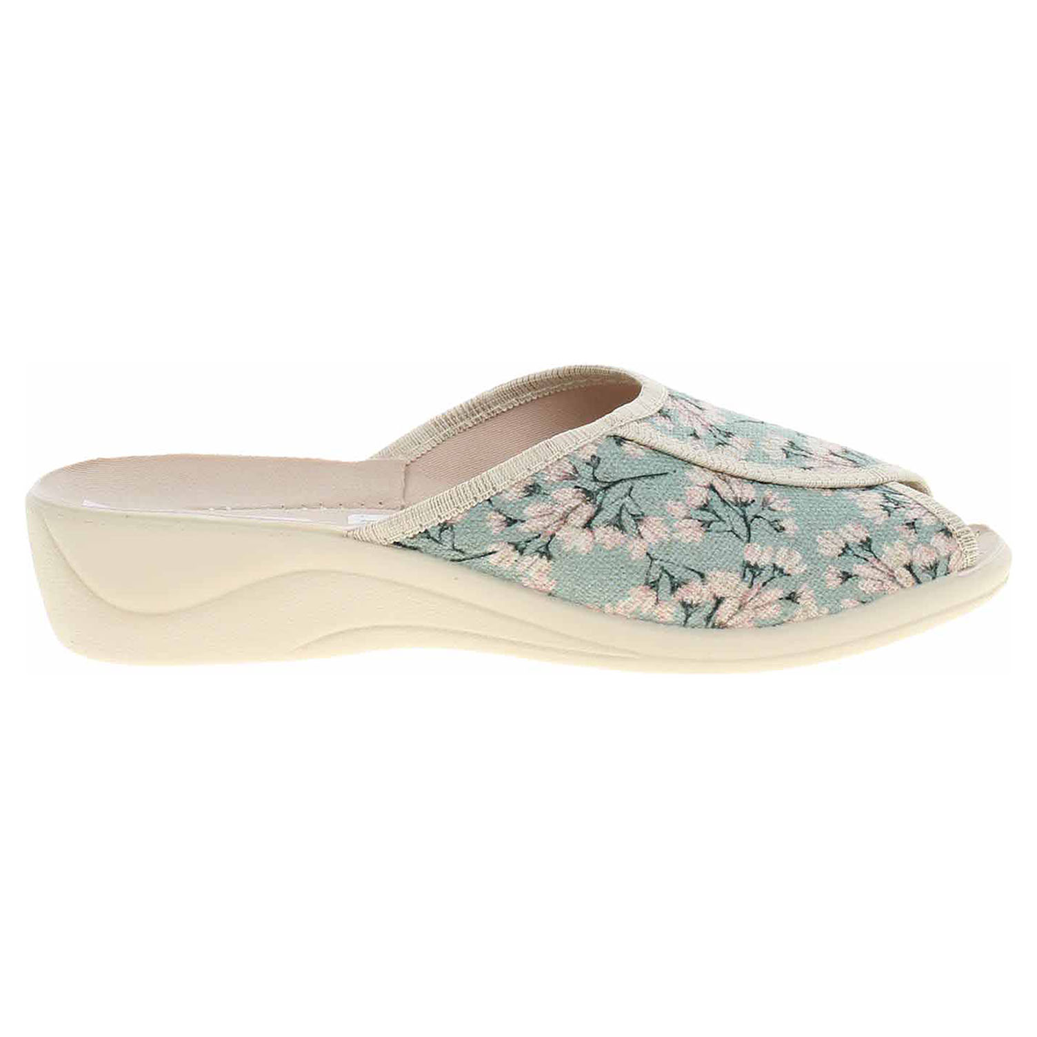 Boty Rogallo - dámské domácí pantofle s volnou špičkou na klínku vysokém 3,5 cm. Svršek, podšívka i stélka jsou textilní.