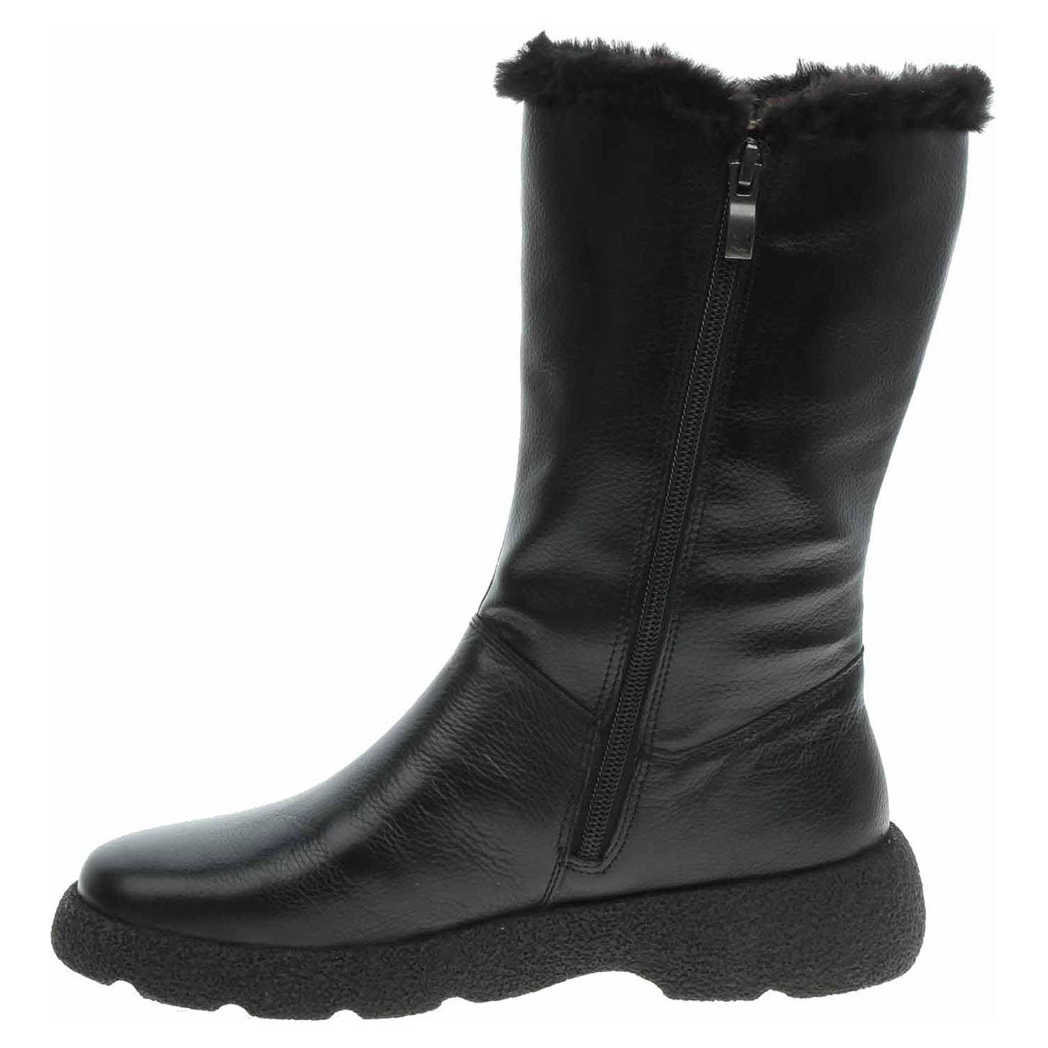 Boty Caprice - lepené dámské kozačky se svrškem z usně jsou vyteplené textilní podšívkou s jemným chloupkem. Obuv je vybavená vyndavací THERMO stélkou se systémem Memotion. Vyměnitelné vložky do bot je možné vyndat za účelem provětrání a omytí. Pohodlné nazouvání zajišťuje zip na vnitřní straně. Zip na vnější straně umožňuje flexibilní zvětšení obvodu lýtka. MEMOTION znamená MEMORY a MOTION. Měkká paměťová pěna ve stélce MEMOTION se ergonomicky přizpůsobí tvaru nohy. Po nošení se částečně vrací do původního tvaru. Chodidlo je opakovaně odpruženo a pohodlně zapuštěno. I v dynamice chůze funguje tlumicí funkce a tlumí tvrdé nárazy. Klínek je vysoký 4,- cm a platforma je vysoká 2,5 cm. Lepená obuv - pevnost lepeného spoje může být negativně ovlivněna promáčením nebo propocením, event. opakovaným používáním nedostatečně vysušené obuvi. Při neopatrné chůzi může dojít k mechanickému uvolnění lepeného spoje - ukopnutí.
