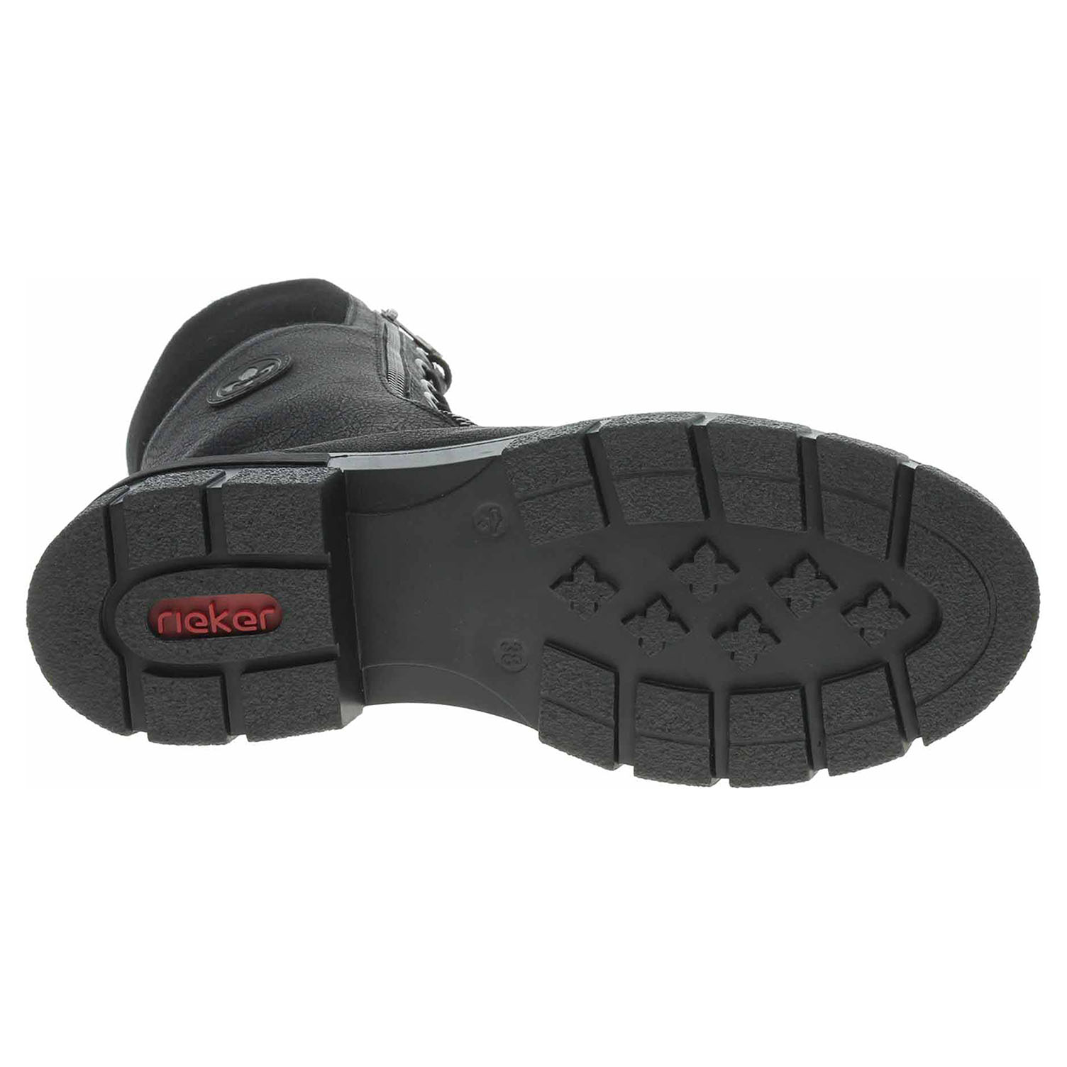 Boty Rieker - lepená dámská obuv se svrškem ze syntetiky a s textilní stélkou je vyteplená textilní podšívkou s jemným chloupkem. Pohodlné nazouvání zajišťuje šněrování a zip na vnitřní straně. Zip na straně vnější má pouze ozdobnou funkci. Podpatek je vysoký 4,2 cm a platforma je vysoká 2,5 cm. Podešev je flexibilní a díky systému Antistress (lehkost, pružnost, prostornost a vynikající absorpce nárazů) Vám obuv zajistí pohodlí při každém kroku. Lepená obuv - pevnost lepeného spoje může být negativně ovlivněna promáčením nebo propocením, event. opakovaným používáním nedostatečně vysušené obuvi. Při neopatrné chůzi může dojít k mechanickému uvolnění lepeného spoje - ukopnutí.