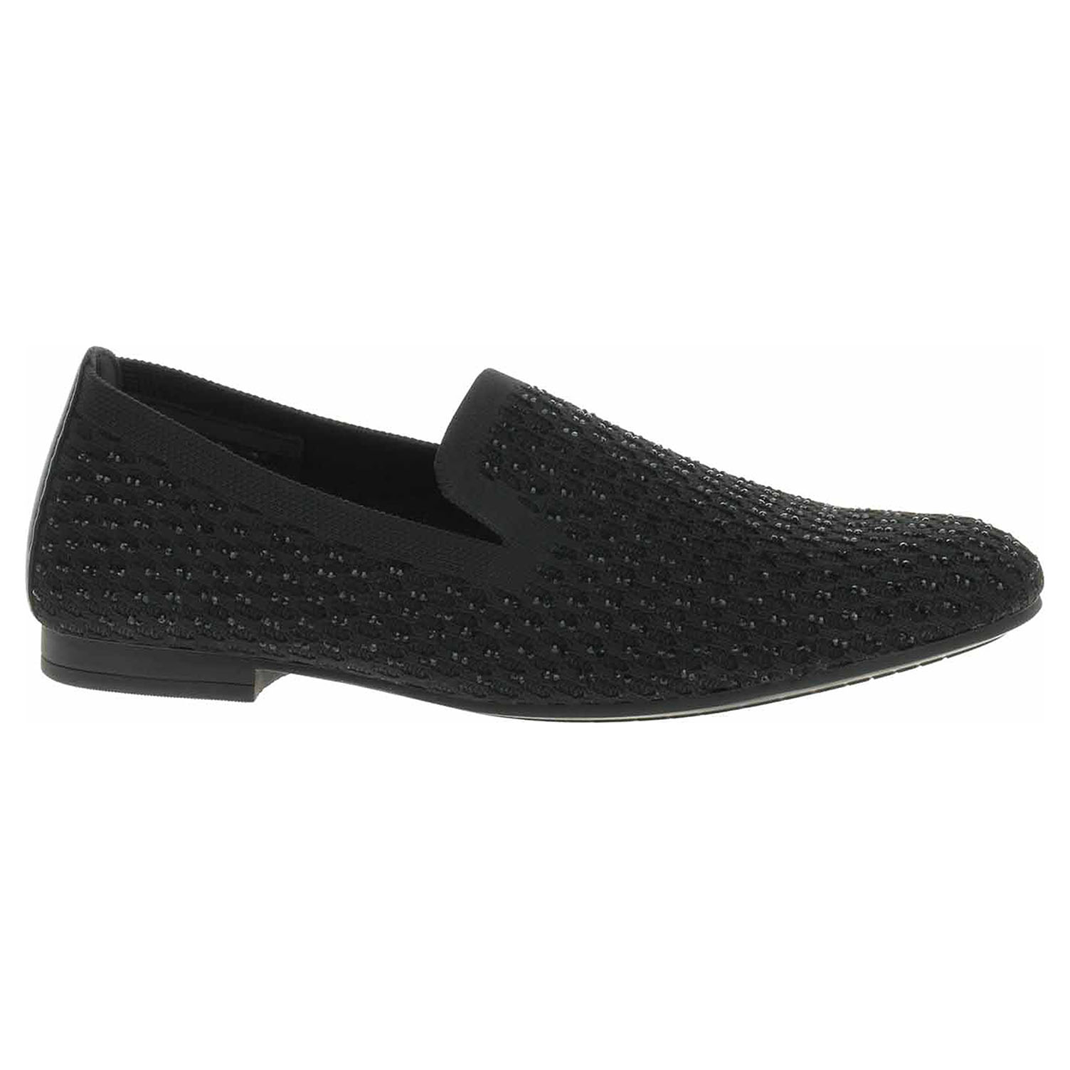 Boty Gabor - módní dámské mokasiny šíře F s prodyšným svrškem kombinovaným textil/useň a se stélkou z usně. Svršek je ozdobený kamínky. Podpatek je vysoký 1,5 cm. Módní obuv - je určena pro krátkodobé nošení v nenáročných podmínkách. Prvořadá je módnost nikoliv životnost. Obuv není vhodná pro každodenní používání.