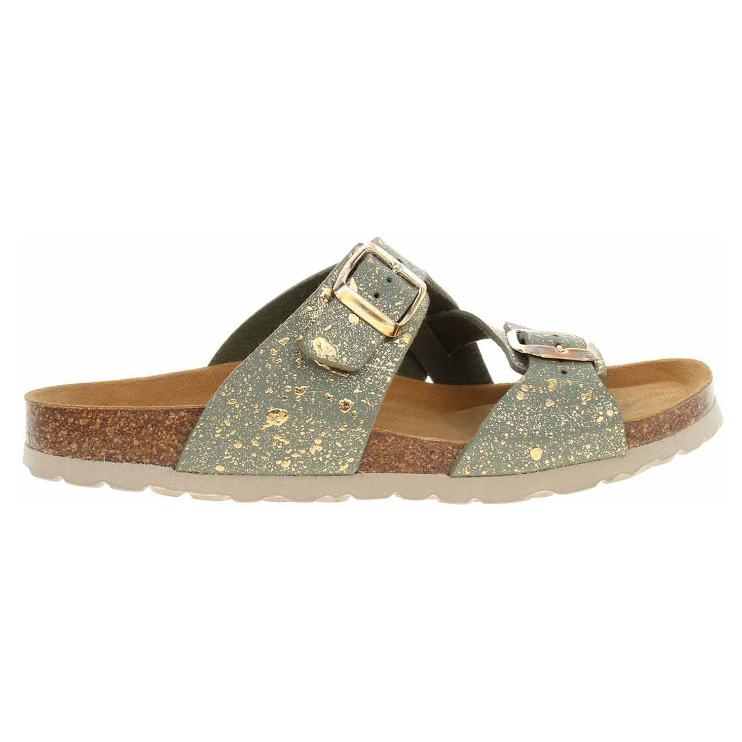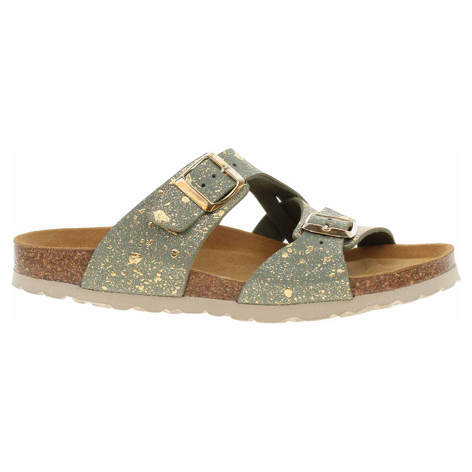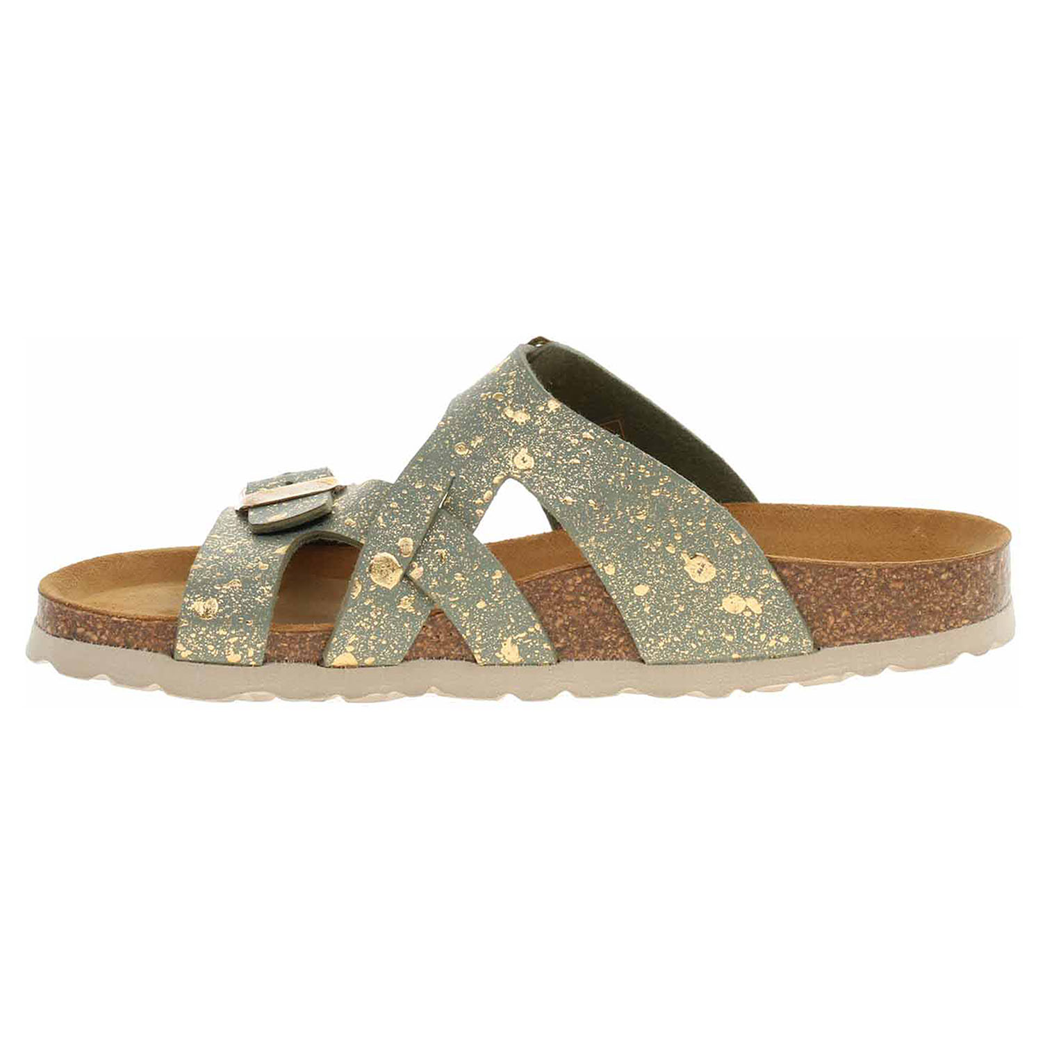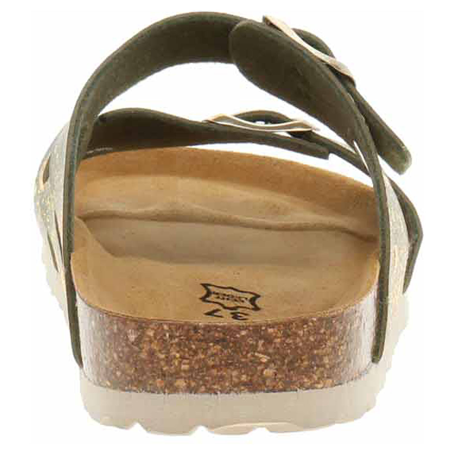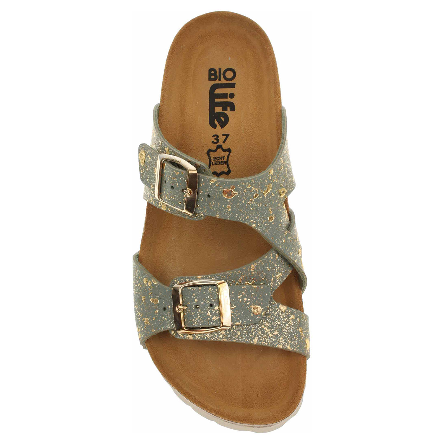 Boty Bio Life - lepené dámské pantofle se svrškem ze syntetického materiálu Birko-Flor jsou vybavené korkovou anatomicky tvarovanou stélkou potaženou kvalitní usní. Pásky přes nárt se zapínají na přezky. Klínek je vysoký 3,- cm. Lepená obuv - pevnost lepeného spoje může být negativně ovlivněna promáčením nebo propocením, event. opakovaným používáním nedostatečně vysušené obuvi. Při neopatrné chůzi může dojít k mechanickému uvolnění lepeného spoje - ukopnutí.