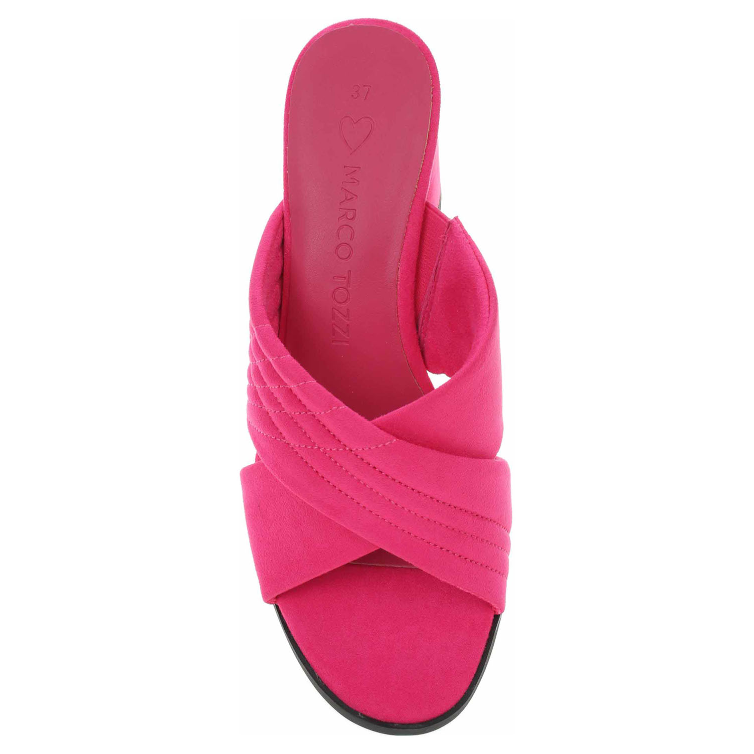 Boty Marco Tozzi - módní dámské vycházkové pantofle s textilním svrškem i podšívkou jsou vybavené stélkou Feel me s nášlapnou vrstvou ze syntetiky, která se přizpůsobuje vašemu chodidlu a zajišťuje optimální komfort při chůzi. Pásek přes nárt je na vnitřní straně vybavený vsazenou gumičkou. Podpatek je vysoký 7,- cm. Módní obuv - je určena pro krátkodobé nošení v nenáročných podmínkách. Prvořadá je módnost nikoliv životnost. Obuv není vhodná pro každodenní používání.