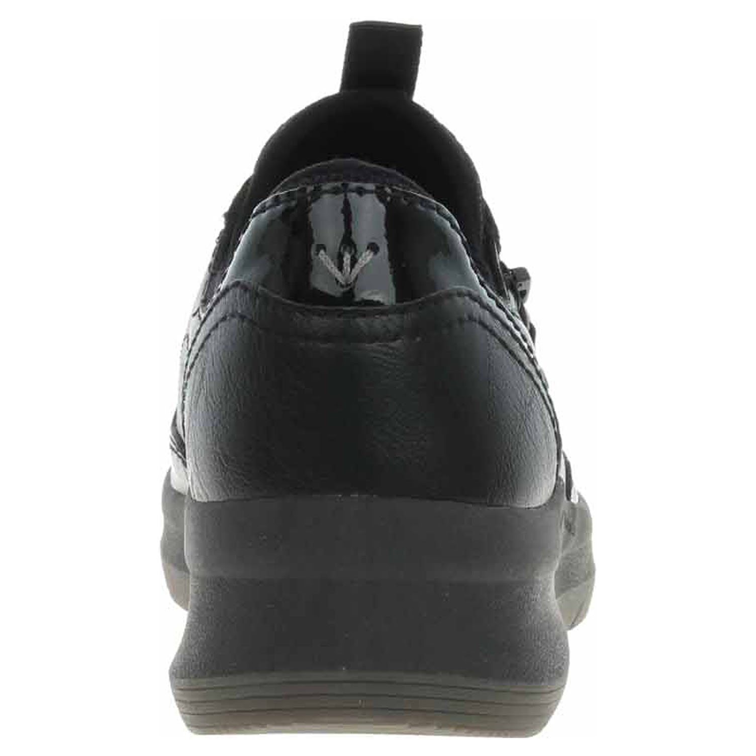 Boty Jana - lepené dámské polobotky nadměrné šíře H se svrškem ze syntetiky a s textilní podšívkou jsou vybavené vyndavací, polstrovanou stélkou Soft Sense s textilní nášlapnou vrstvou. Pohodlné nazouvání zajišťuje textilní ponožkový nástup do obuvi. Zip na vnější straně nártu má pouze ozdobnou funkci. Klínek je vysoký 5,- cm a platforma je vysoká 2,5 cm. Obuv je 100% VEGAN = při výrobě obuvi nebyly použity žádné materiály ze zvířat. Lepená obuv - pevnost lepeného spoje může být negativně ovlivněna promáčením nebo propocením, event. opakovaným používáním nedostatečně vysušené obuvi. Při neopatrné chůzi může dojít k mechanickému uvolnění lepeného spoje - ukopnutí.