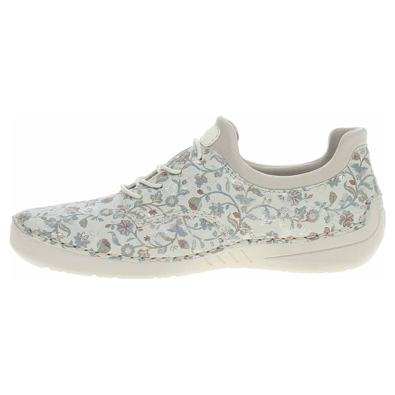 Boty Rieker - flexiblové dámské polobotky se svrškem ze syntetiky a s textilní podšívkou jsou vybavené vyměkčenou stélkou z usně. Pohodlné nazouvání zajišťuje textilní ponožkový nástup do obuvi. Šněrováním je provlečená nekonečná gumička, která zvyšuje stabilitu nohy v obuvi. Klínek je vysoký 2,7 cm. Podešev je flexibilní a díky systému Antistress (lehkosti + pružnost + prostornost a vynikající absorpce) skvěle tlumí nárazy a otřesy. Flexiblová obuv - prošívaná podešev, obuv používejte v suchém prostředí. Při zvýšené vlhkosti může dojít k promáčení obuvi. Obuv pravidelně impregnujte nebo krémujte, zvláště pak prošívaný okraj.