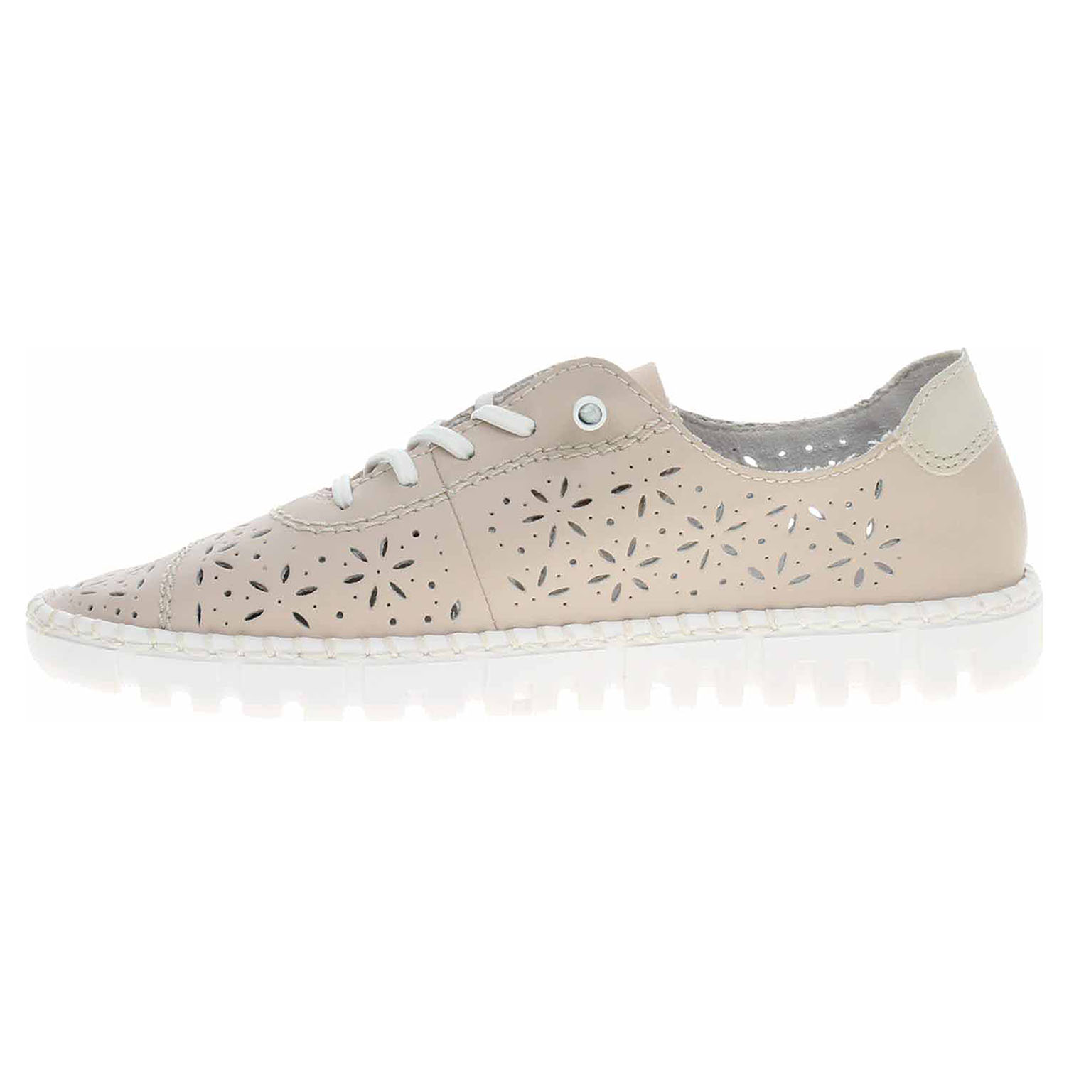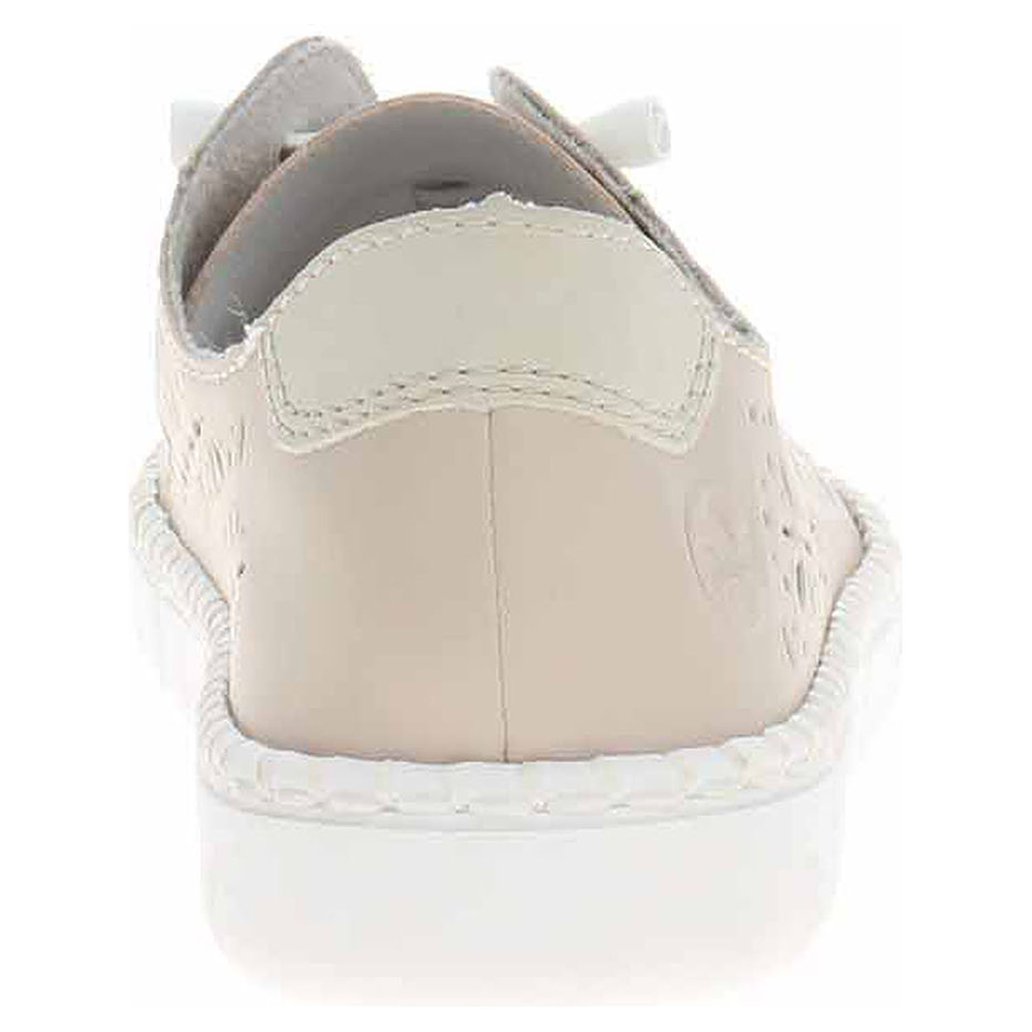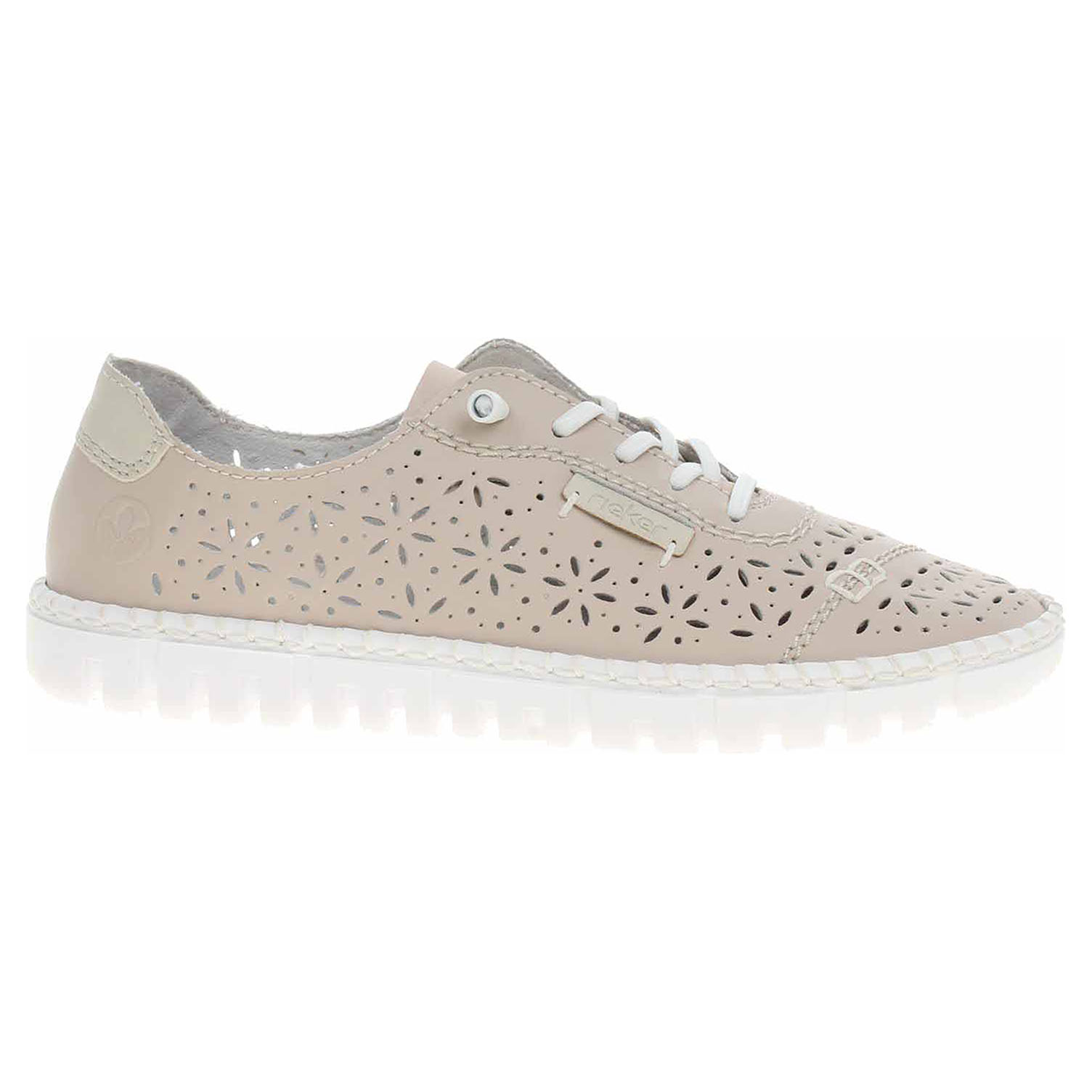 Boty Rieker - flexiblové dámské polobotky s perforovaným svrškem kombinovaným useň/syntetika, s textilní podšívkou a se stélkou z usně. Pohodlné nazouvání zajišťuje gumička provlečená šněrováním. Klínek je vysoký 2,7 cm. Podešev je flexibilní a díky systému Antistress skvěle tlumí nárazy a otřesy. Flexiblová obuv - prošívaná podešev, obuv používejte v suchém prostředí. Při zvýšené vlhkosti může dojít k promáčení obuvi. Obuv pravidelně impregnujte nebo krémujte, zvláště pak prošívaný okraj.