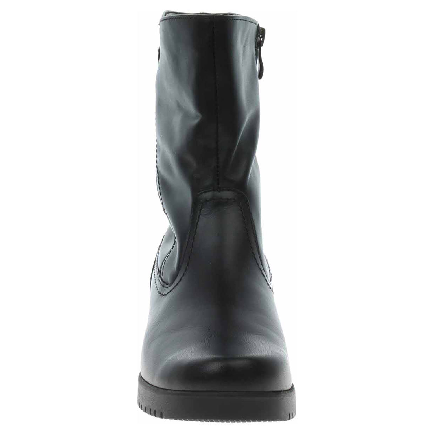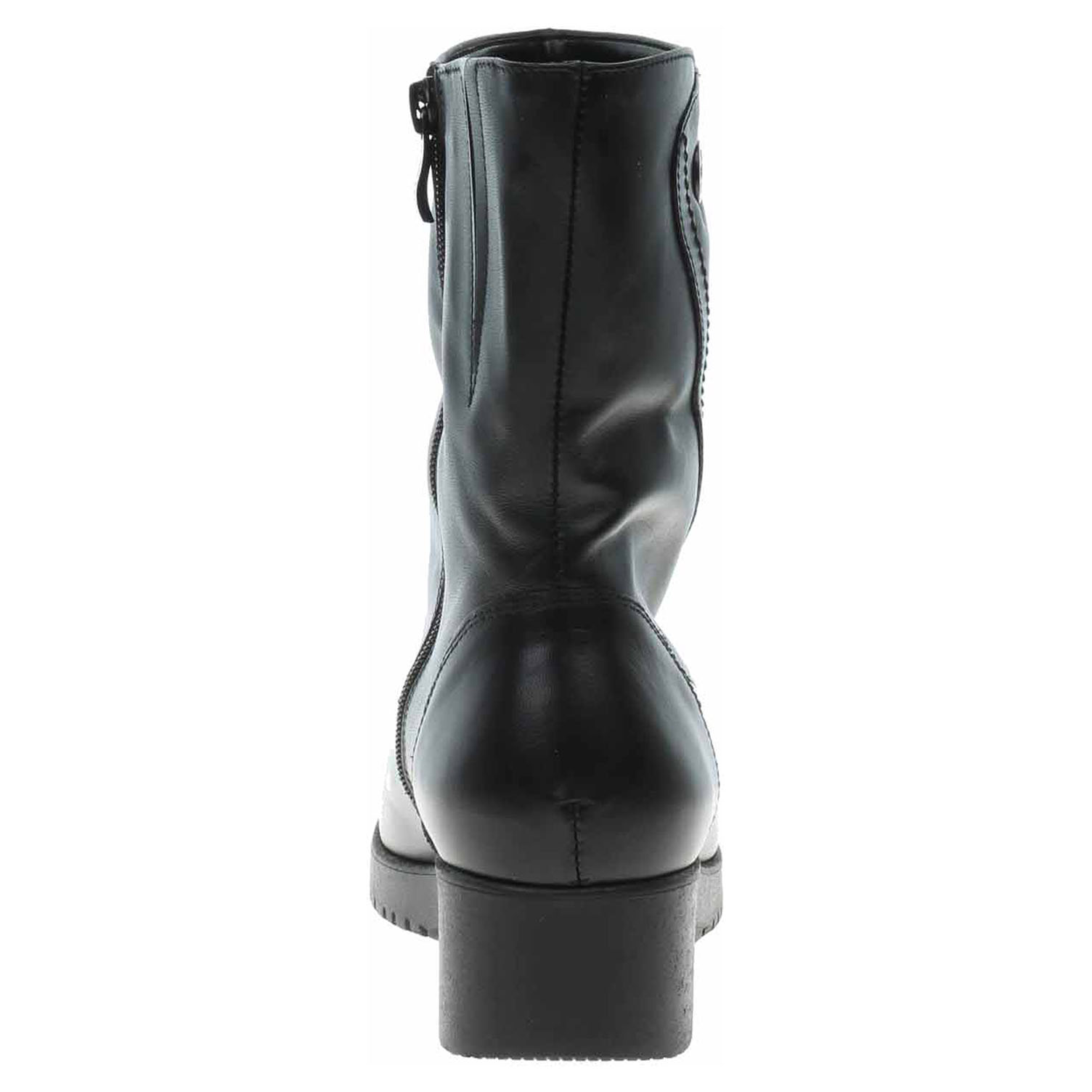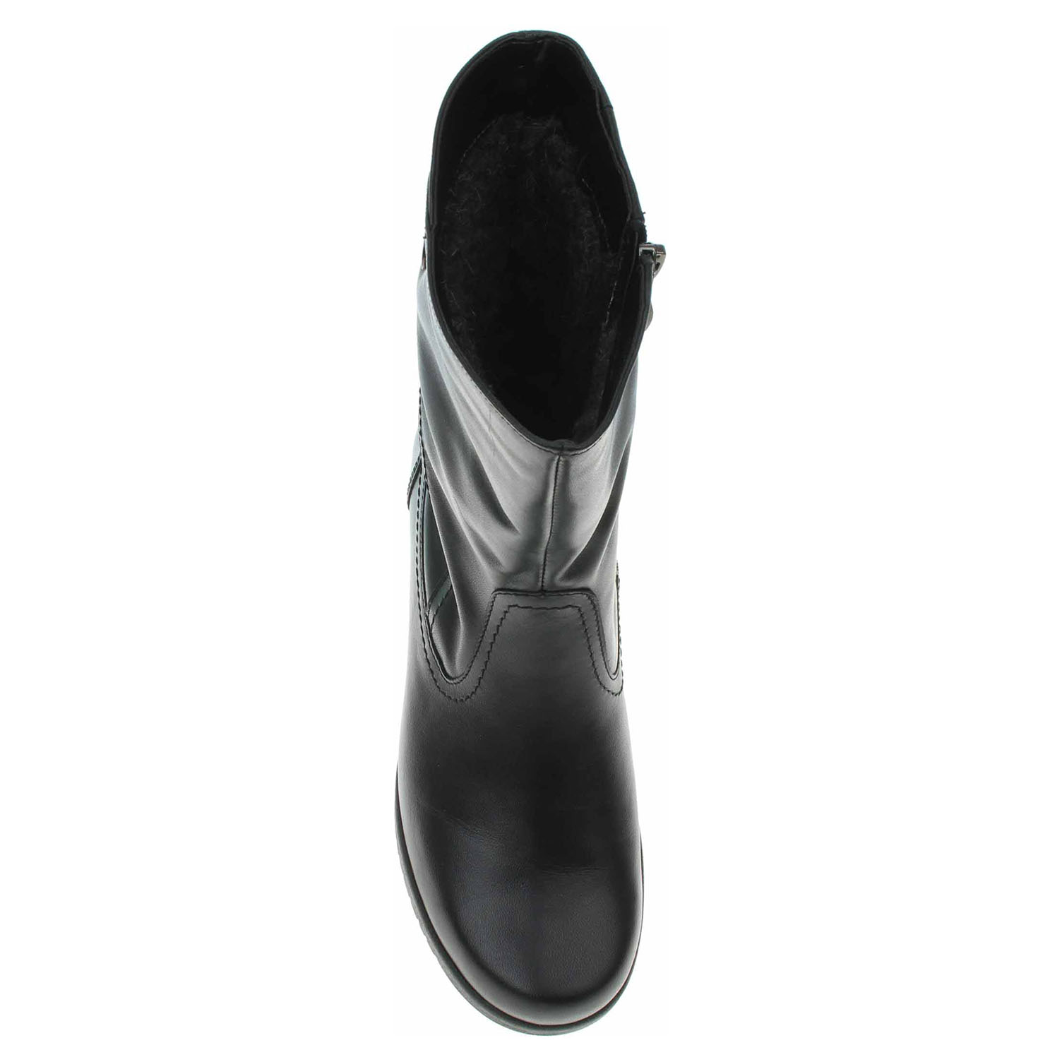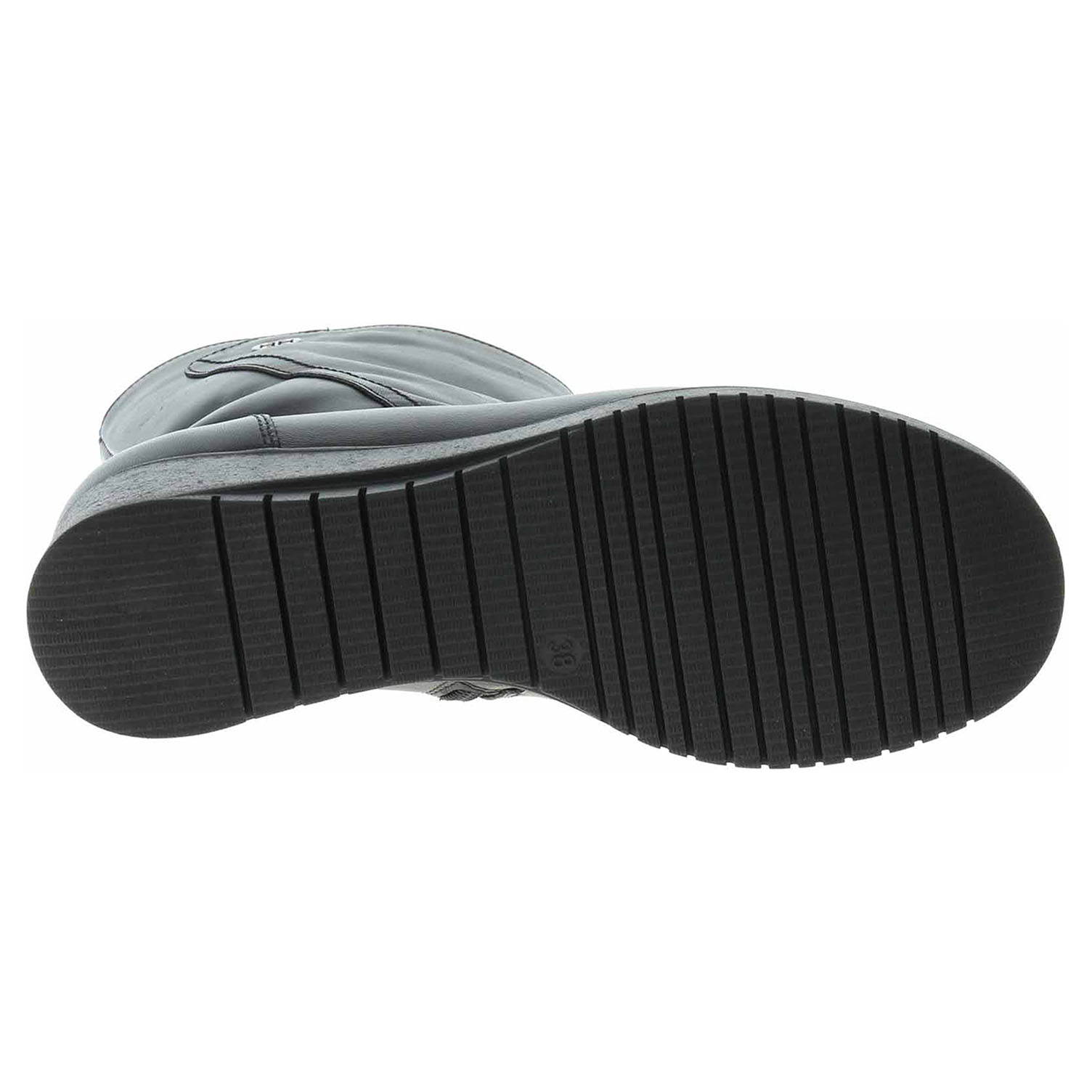 Boty Barton - lepené dámské polokozačky se svrškem z usně jsou vybavené zipem a na vnitřní straně vsazenou gumičkou. Obuv je vyteplená textilní podšívkou s delším chloupkem. Klínek je vysoký 4,- cm. Lepená obuv - pevnost lepeného spoje může být negativně ovlivněna promáčením nebo propocením, event. opakovaným používáním nedostatečně vysušené obuvi. Při neopatrné chůzi může dojít k mechanickému uvolnění lepeného spoje - ukopnutí.