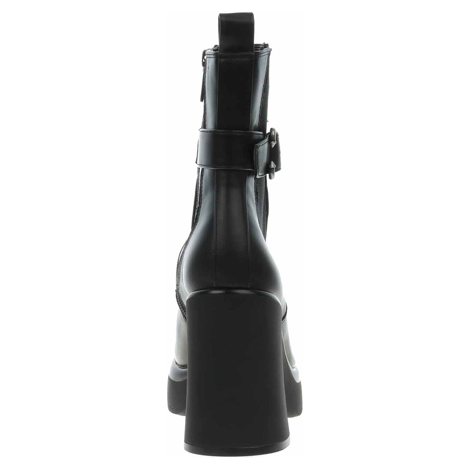 Boty Tamaris - lepené dámské polokozačky se svrškem ze syntetiky a s textilní podšívkou i stélkou mají podpatek s protiskluzovou úpravou AntiSlide vysoký 11,- cm a platformu vysokou 3,- cm. Pohodlné nazouvání zajišťuje zip na vnitřní straně a vsazená gumička na straně vnější. Obuv je 100% VEGAN = při výrobě obuvi nebyly použity žádné materiály ze zvířat. Lepená obuv - pevnost lepeného spoje může být negativně ovlivněna promáčením nebo propocením, event. opakovaným používáním nedostatečně vysušené obuvi. Při neopatrné chůzi může dojít k mechanickému uvolnění lepeného spoje - ukopnutí.