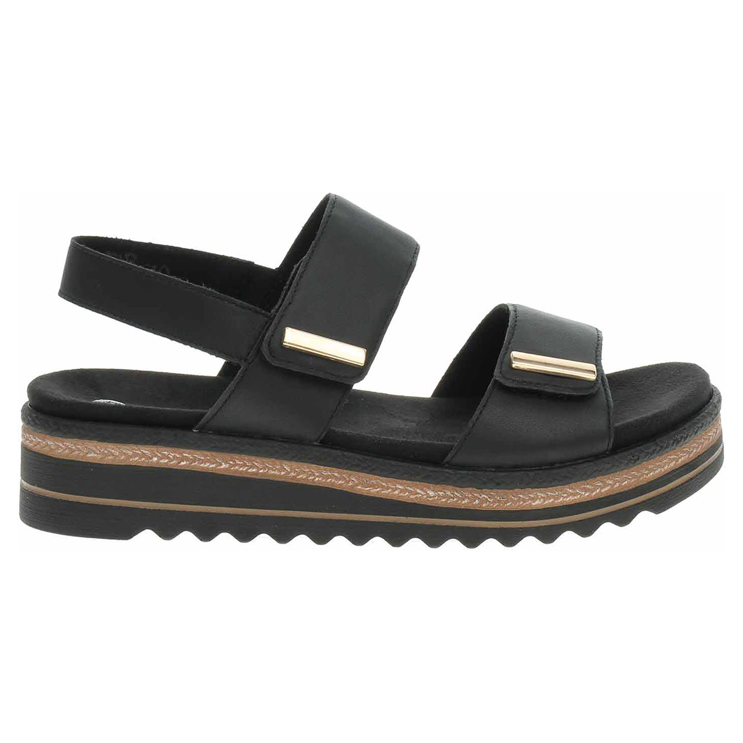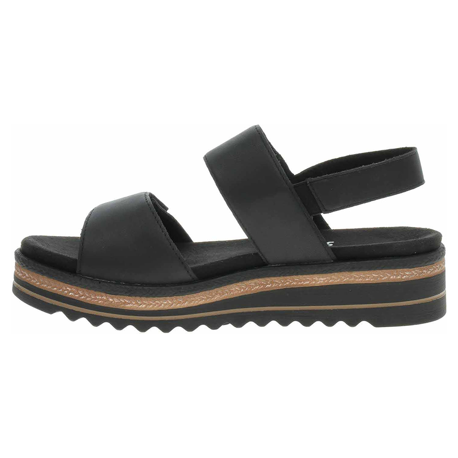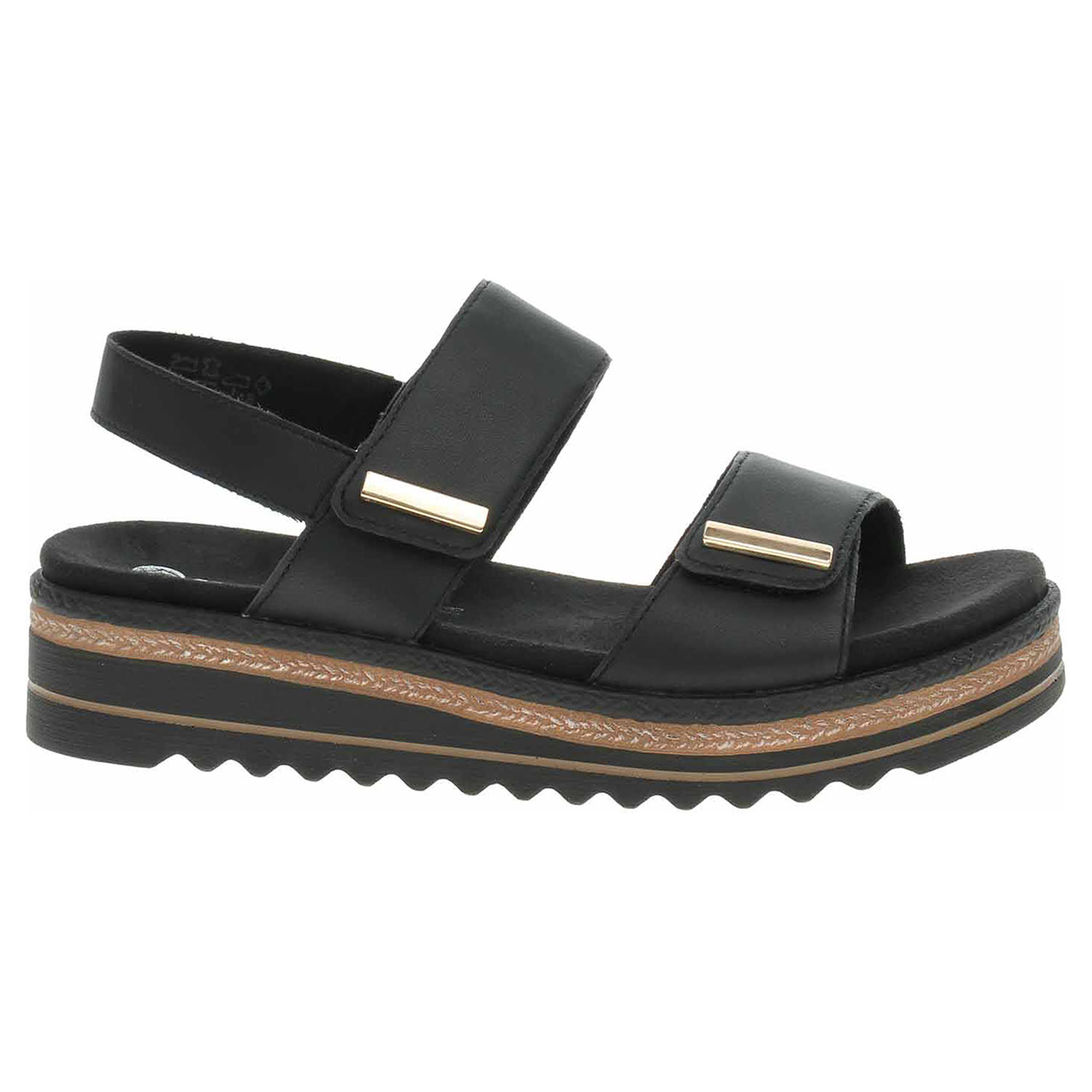 Boty Remonte - dámské sandály se svrškem z usně a s textilní podšívkou jsou vybavené tvarovanou, vyndavací stélkou s textilní nášlapnou vrstvou, která je k obuvi připevněna suchými zipy, takže je možno ji kdykoliv vyndat a očistit nebo usušit. Pásky přes špičku a nárt se zapínají na suchý zip. Pásek přes patu je vybavený na vnitřní straně vsazenou gumičkou. Lite´n Soft = chůze jak v oblacích - ultra lehká a protiskluzová podešev + velmi příjemné materiály + extra měkká komfortní stélka. Klínek je vysoký 4,- cm a platforma je vysoká 2,- cm.