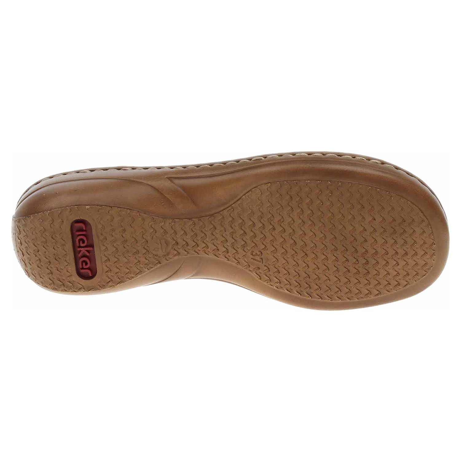 Boty Rieker - dámské sandály se svrškem a s podšívkou ze syntetiky jsou vybavené vyměkčenou stélkou s textilní našlapnou vrstvou. Pro pohodlné nazouvání je ozdobným kroužkem přes nárt provlečená gumička. Podešev je flexibilní a díky systému Antistress skvěle tlumí nárazy a otřesy. Klínek je vysoký 3,5 cm.