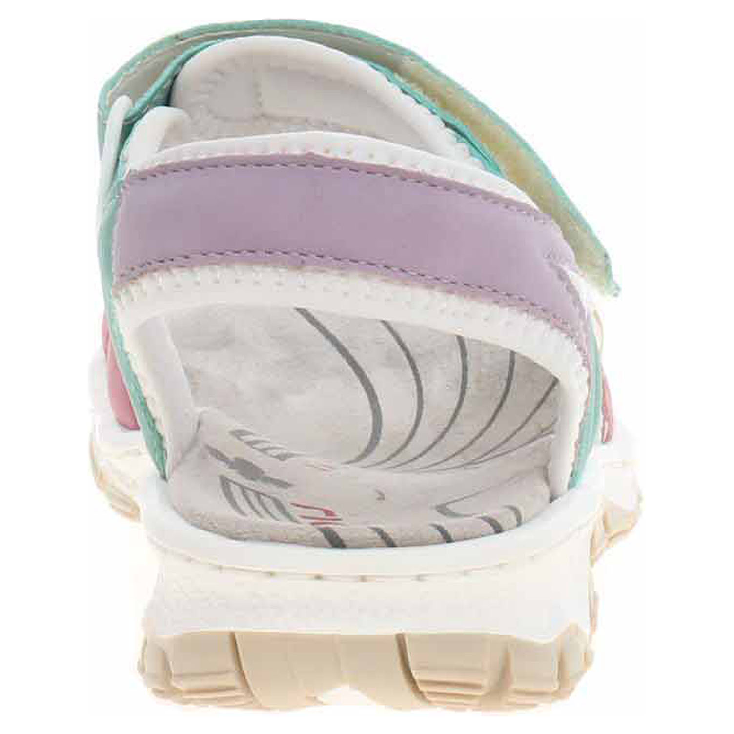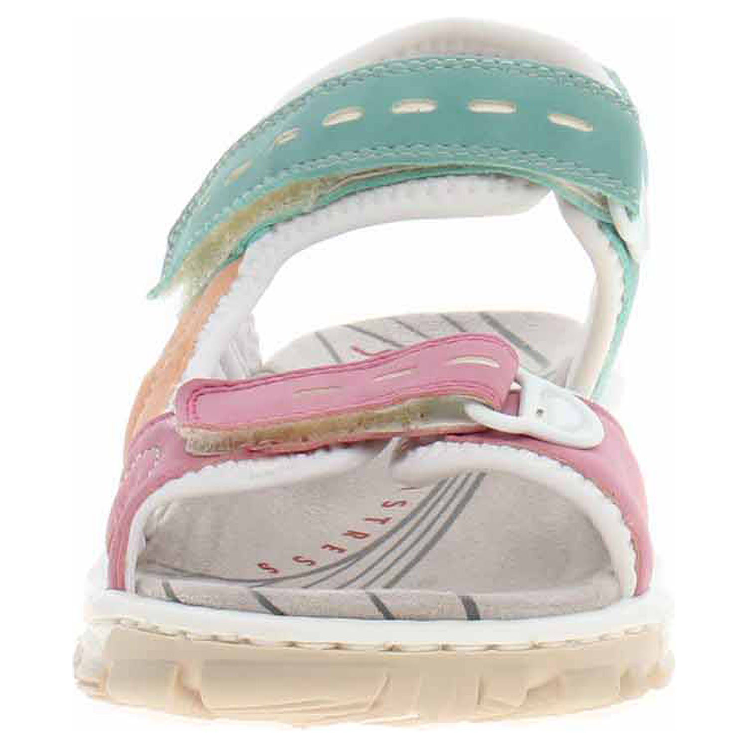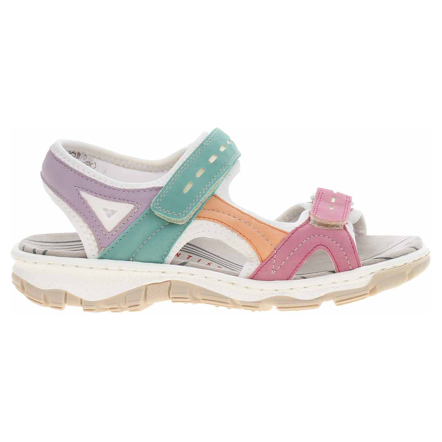 Boty Rieker - dámské sandály se svrškem kombinovaným syntetika/textil a s textilní podšívkou i stélkou. Pásky přes špičku a nárt se zapínají na suchý zip. Podešev je flexibilní a díky systému Antistress (lehkost, pružnost, prostornost a vynikající absorpce nárazů) Vám obuv zajistí pohodlí při každém kroku.