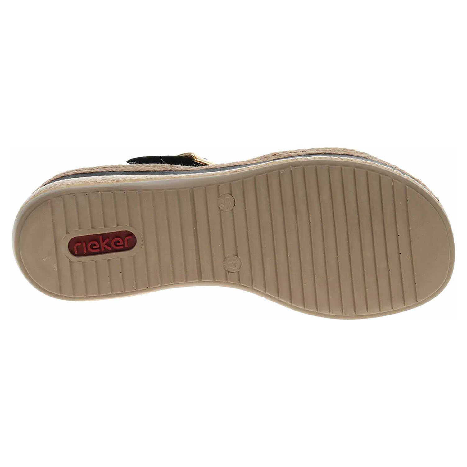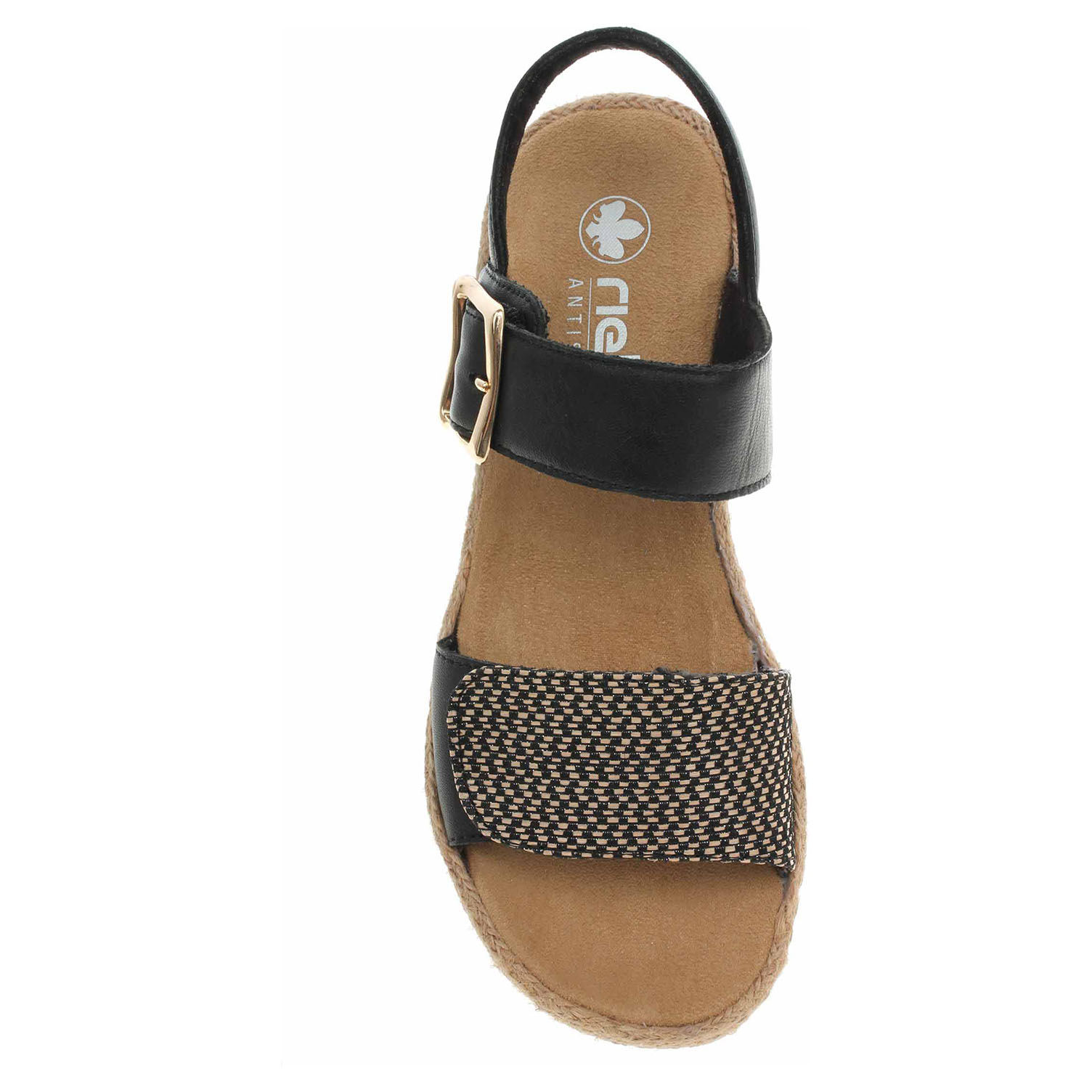 Boty Rieker - dámské sandály se svrškem kombinovaným useň/textil a s textilní podšívkou i stélkou mají klínek vysoký 4,4 cm a platforma je vysoká 3,- cm. Pásky přes špičku i přes nárt se zapínají na suchý zip. Podešev je flexibilní a díky systému Antistress (lehkost, pružnost, prostornost a vynikající absorpce nárazů) Vám obuv zajistí pohodlí při každém kroku.