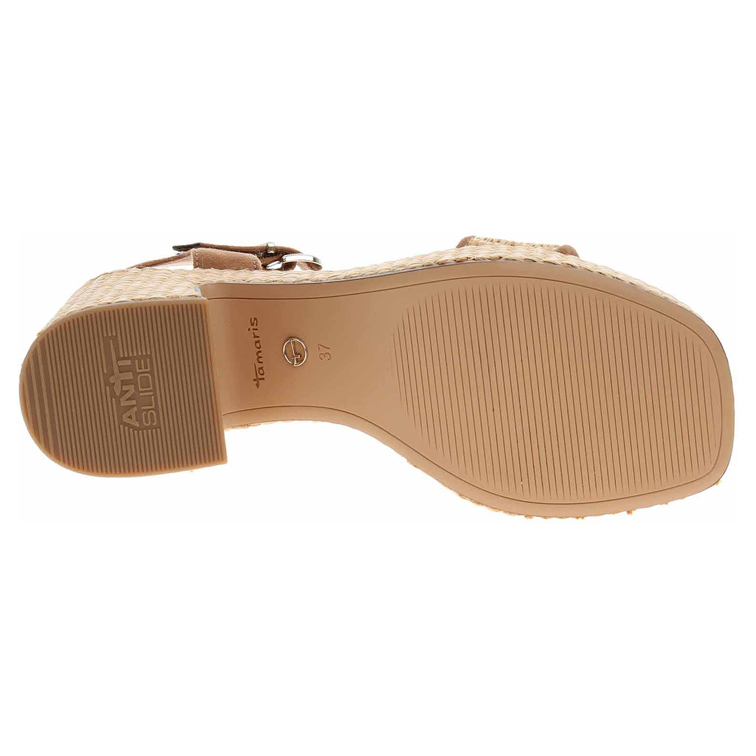 Boty Tamaris - dámské sandály s textilním svrškem a s podšívkou kombinovanou textil/syntetika jsou vybavené paměťovou stélkou Touch it s nášlapnou vrstvou z usně, která se přizpůsobuje vašemu chodidlu a zajišťuje při chůzi optimální komfort. Pásek přes kotník se zapíná na suchý zip a na vnitřní straně je vybavený vsazenou gumičkou. Podpatek s protiskluzovou úpravou AntiSlide je vysoký 8,- cm a platforma je vysoká 3,- cm.