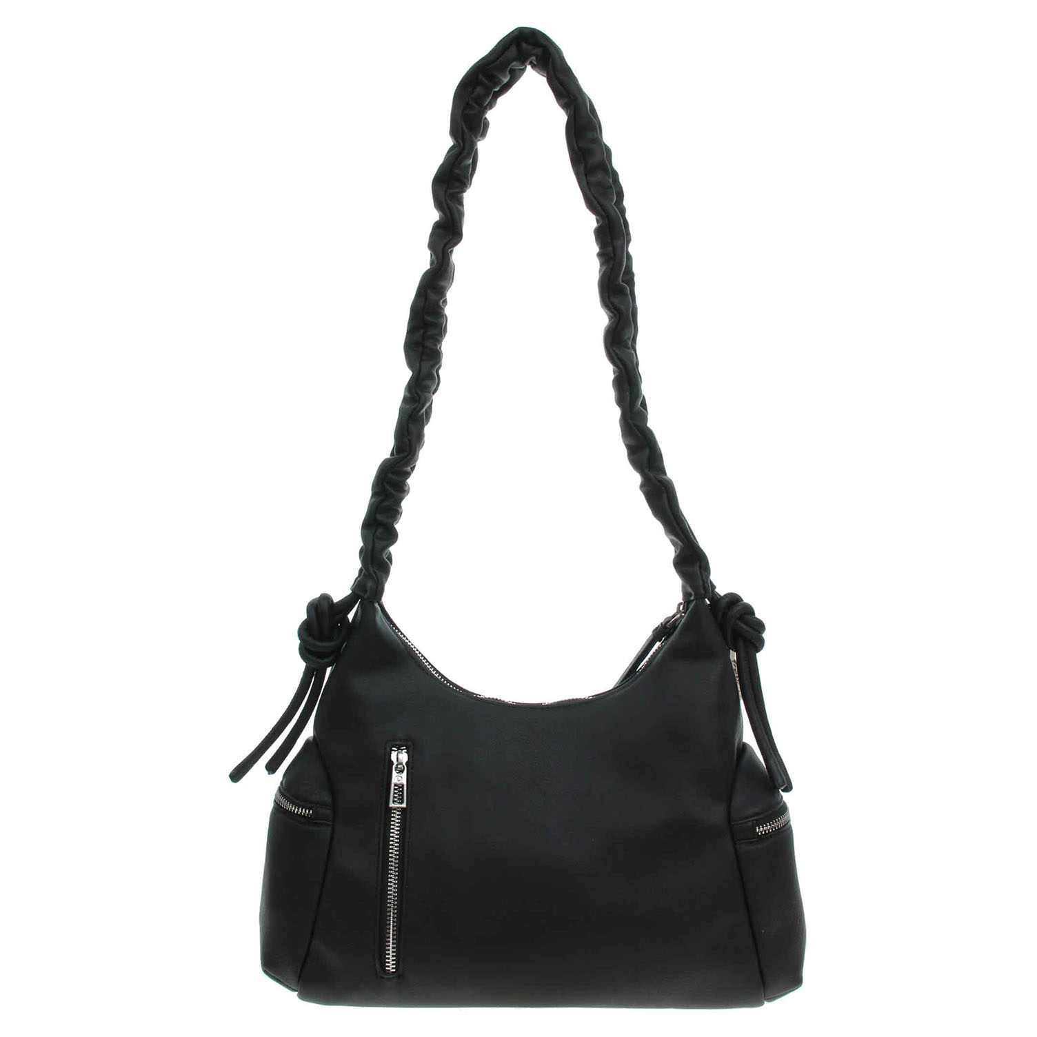 Desigual Half Logo Montville - dámská kabelka se svrškem ze 100% polyuretanu a s podšívkou ze 100% polyesteru má rozměry 33 x 13 x 24 cm (formát A4 se nevejde). Kabelka se zapíná na zip a na bocích a na zadní straně má kapsičky se zipem. Kabelku je možno nosit v ruce (výška 23 cm) nebo přes rameno po rozvázání uzlů na bocích a upravení délky popruhu dle potřeby (max délka cca 90 cm). Kabelka je ozdobená přívěškem s logem Desigual, který se dá odepnout. Vnitřní výbava: 1x kapsa se zipem.