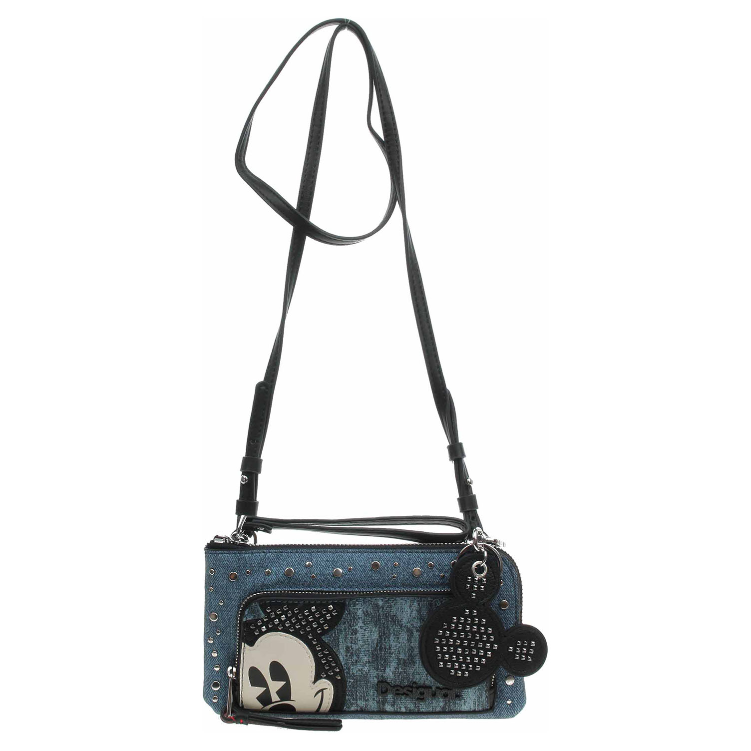 Desigual - dámská Mickey Mouse kabelka na mobil (100% polyuretan / 100% polyester) s odnímatelným přívěškem a se zapínáním na zip má rozměry 20 x 3 x 12 cm. Je možné ji nosit přes rameno nebo crossbody na odepínatelném pásku nebo jen v ruce za poutko. Na přední straně je kapsička se zipem rozdělená na dva oddíly a přihrádky na platební karty. Vnitřní výbava: 1x kapsa se zipem.