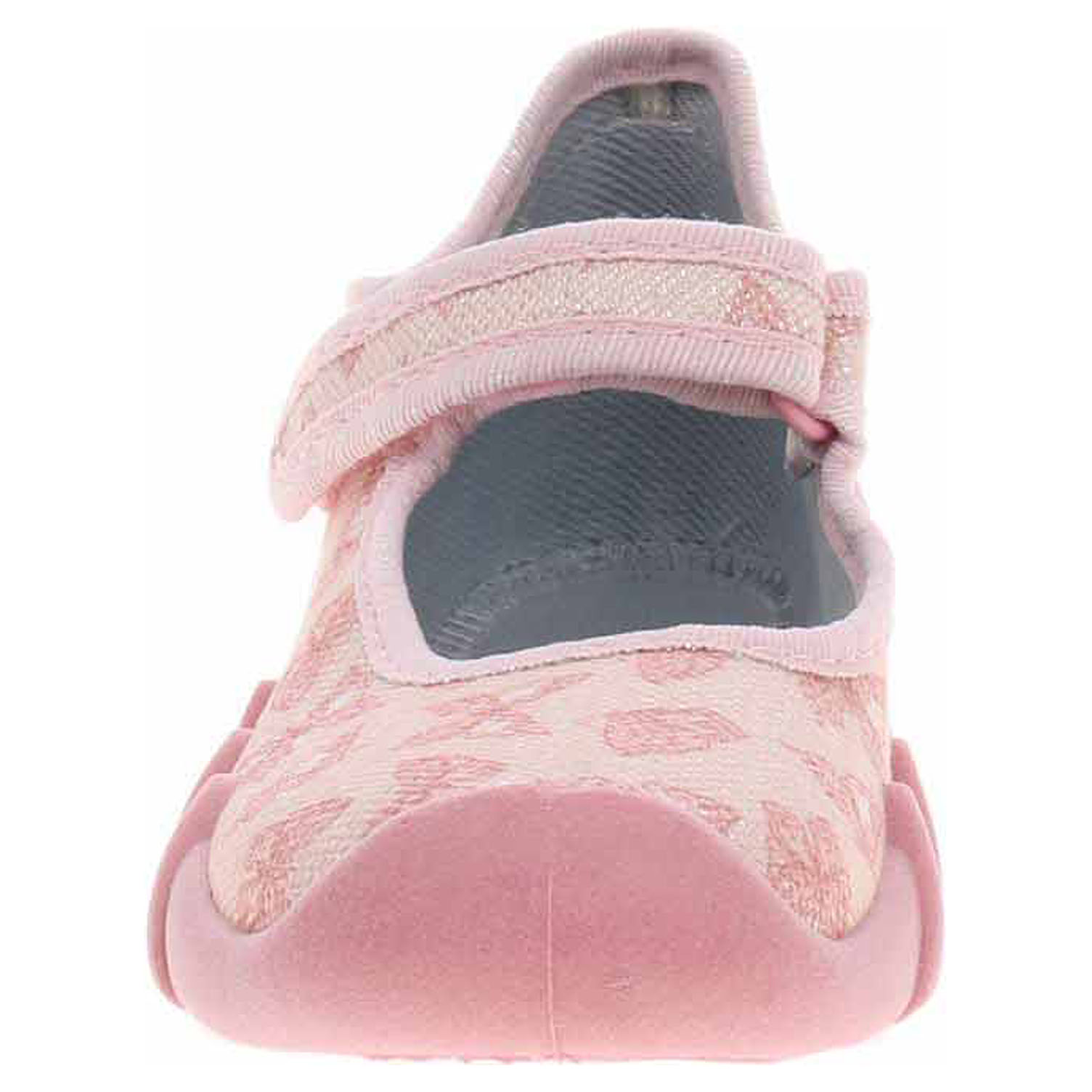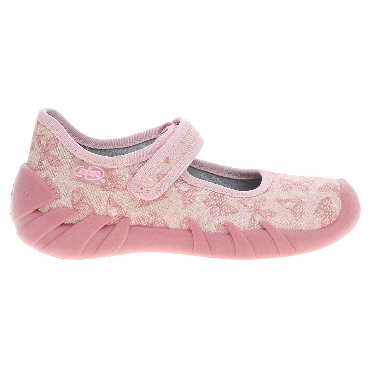 Boty Befado - dívčí domácí bačkory s textilním svrškem, podšívkou i stélkou jsou vybavené dýchající podešví. Pásek přes nárt se zapíná na suchý zip. Dětská obuv - je vzhledem ke způsobu užívání vystavena většímu mechanickému poškození - okopání. Mechanické poškození není důvodem k reklamaci.