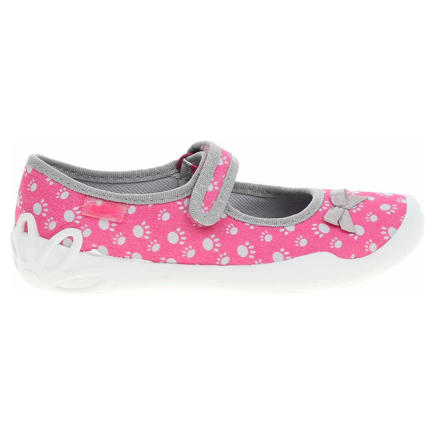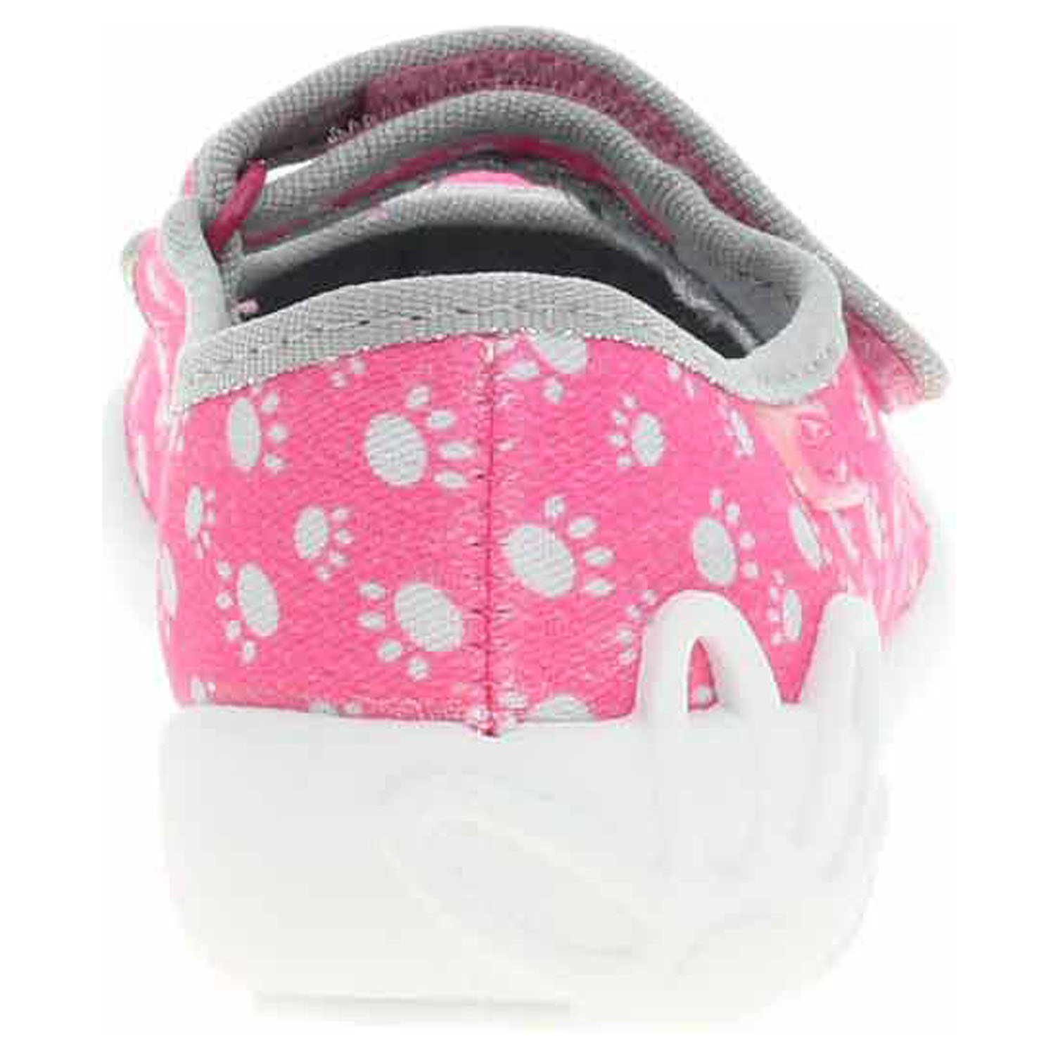 Boty Befado - dívčí domácí bačkory s textilním svrškem, podšívkou i stélkou jsou vybavené dýchající podešví. Pásek přes nárt, který se zapíná na suchý zip, zajišťuje pohodlné nazouvání a stabilitu nohy v obuvi. Dětská obuv - je vzhledem ke způsobu užívání vystavena většímu mechanickému poškození - okopání. Mechanické poškození není důvodem k reklamaci.