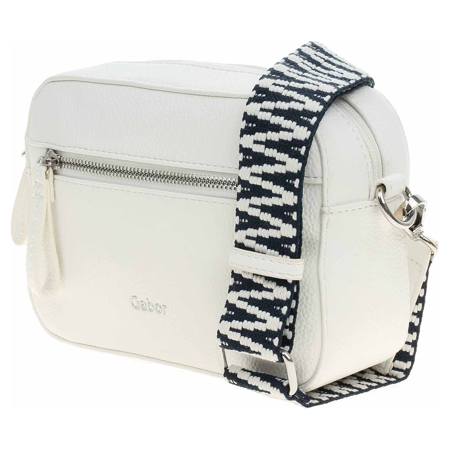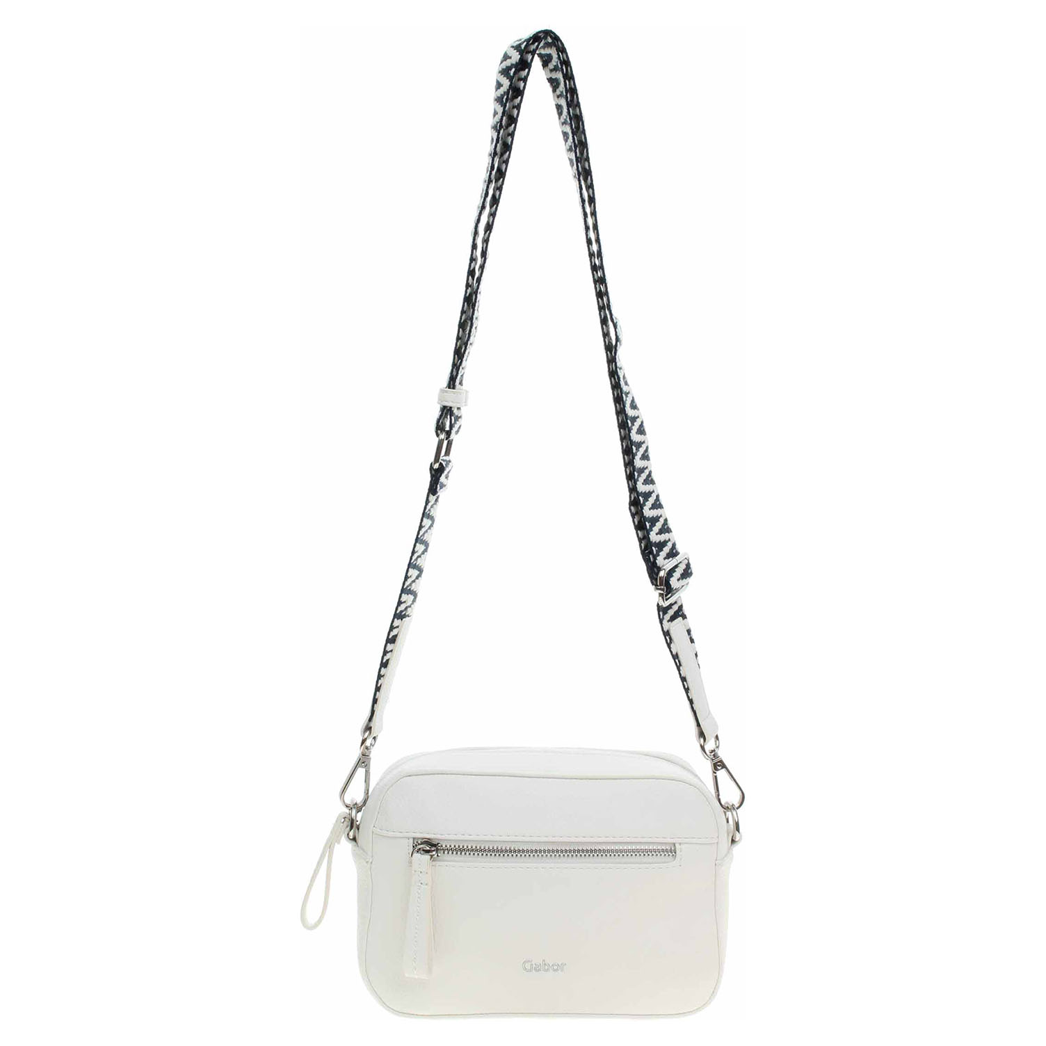 Gabor - dámská jednokomorová kabelka uzavíratelná na zip má rozměry 21 x 15 x 7 cm a je vybavená vyměnitelnými popruhy. Kabelku ze syntetického materiálu je možno nosit přes rameno nebo crossbody na regulovatelném popruhu z polyesteru nebo po výměně na regulovatelném popruhu z polyuretanu. Na přední straně s logem je kapsa se zipem. Vnitřní výbava: 1x kapsa se zipem, 1x kapsa bez zapínání.