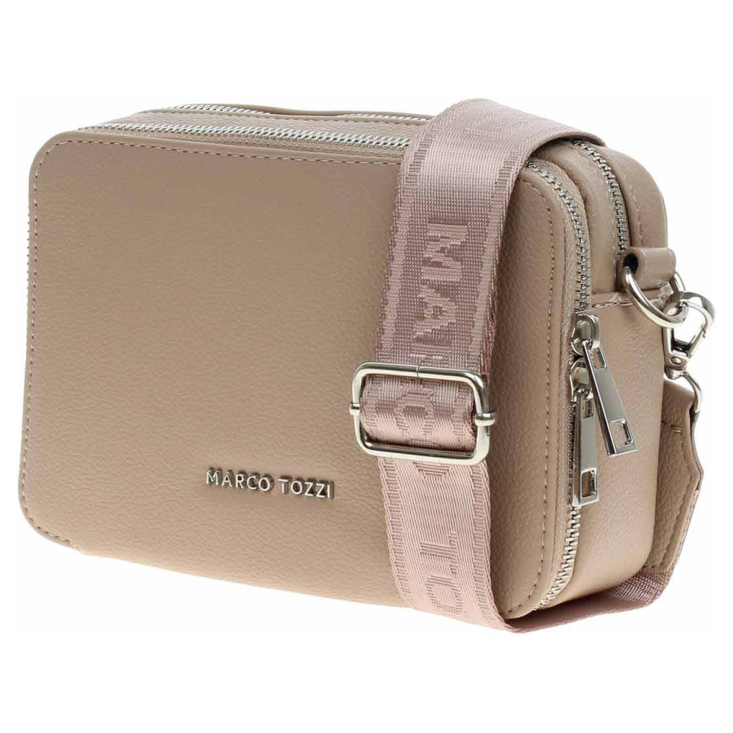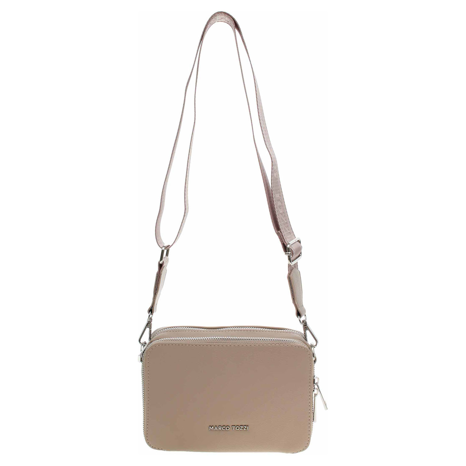 Marco Tozzi - dámská crossbody kabelka se zapínáním na zip je vyrobená z polyuretanu a s podšívkou z polyesteru. Na přední straně je kapsa s dvoucestným zipem. Regulovatelný popruh s karabinkami se dá odepnout. Formát A4 se nevejde. Rozměry: 19 x 13 x 6 cm. Vnitřní výbava: uvnitř přední kapsy jsou přihrádky na platební karty a kapsa bez zapínání. Uvnitř hlavní komory je 1x kapsa se zipem a 1x kapsa bez zapínání.