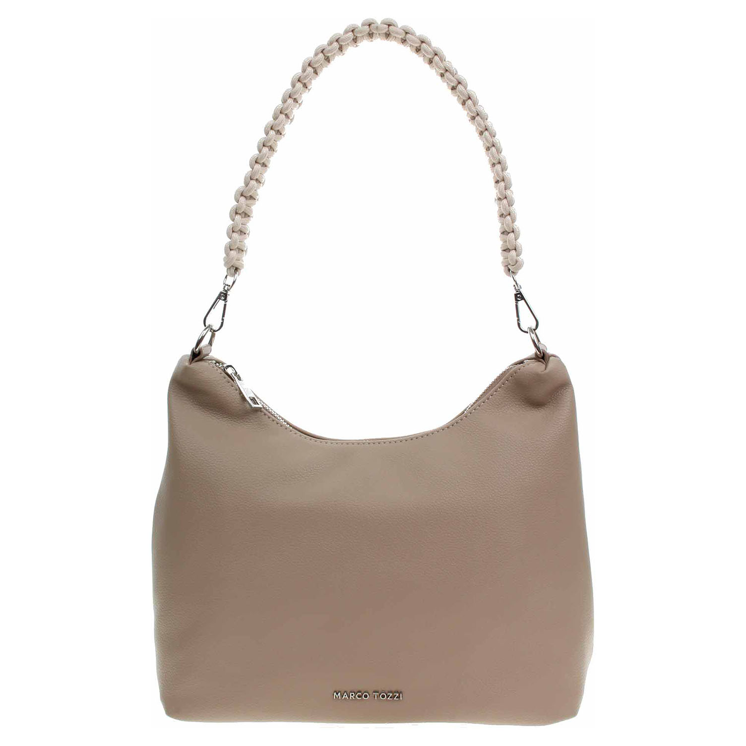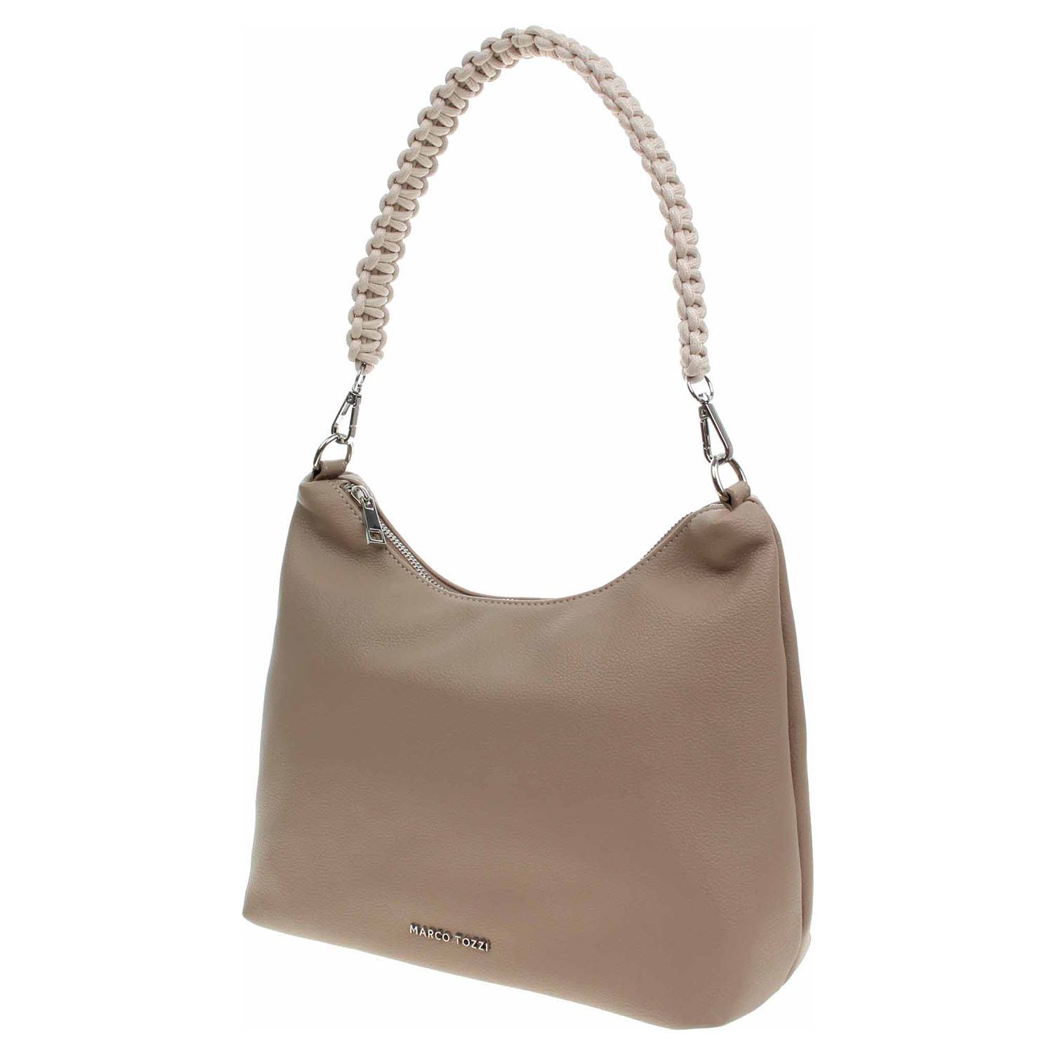 Marco Tozzi - dámská kabelka se zapínáním na zip má svršek z polyuretanu a podšívku z polyesteru. Kabelku s rozměry 28 x 22 x 11 cm je možno nosit v ruce za proplétané ucho s karabinkami (výška 25 cm) nebo přes rameno na regulovatelném popruhu s karabinkami. Vnitřní výbava: 1x kapsa se zipem, 2x kapsa na drobnosti bez zapínání.