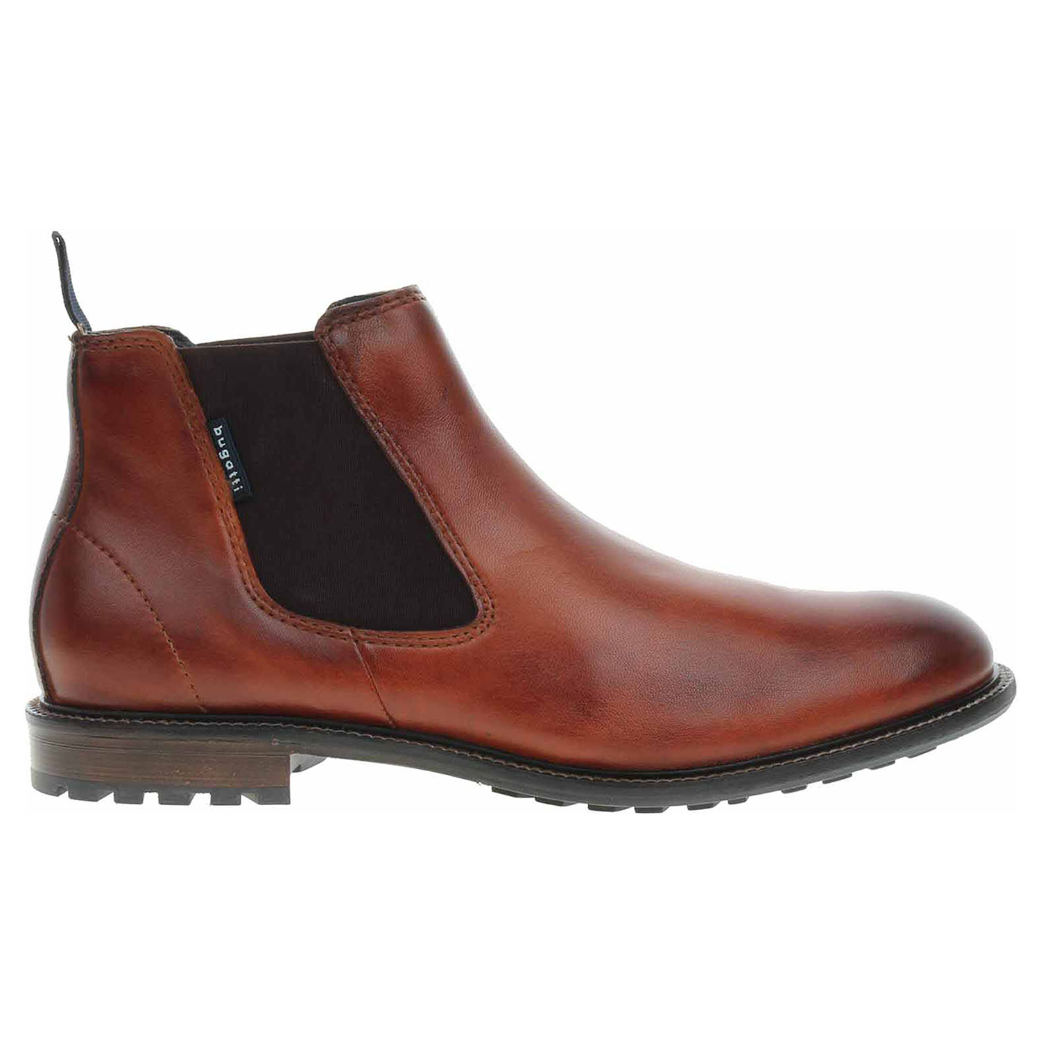 Boty Bugatti - lepená pánská kotníková obuv (perka) se svrškem z usně a s textilní podšívkou má stélku kombinovanou syntetika/textil. Pohodlné nazouvání zajišťují vsazené gumičky na vnější i na vnitřní straně kotníku. "Hand Finish" (ruční dokončení) - každá bota Bugatti je unikátní díky dvoubarevnému odstínovanému manuálnímu finiši povrchové úpravy obuvi. Bugatti Care - ochranný sprej nejprve vyzkoušejte na vnitřní straně bot nebo pod tkaničkami. Podpatek je vysoký 2,5 cm. Lepená obuv - pevnost lepeného spoje může být negativně ovlivněna promáčením nebo propocením, event. opakovaným používáním nedostatečně vysušené obuvi. Při neopatrné chůzi může dojít k mechanickému uvolnění lepeného spoje - ukopnutí.