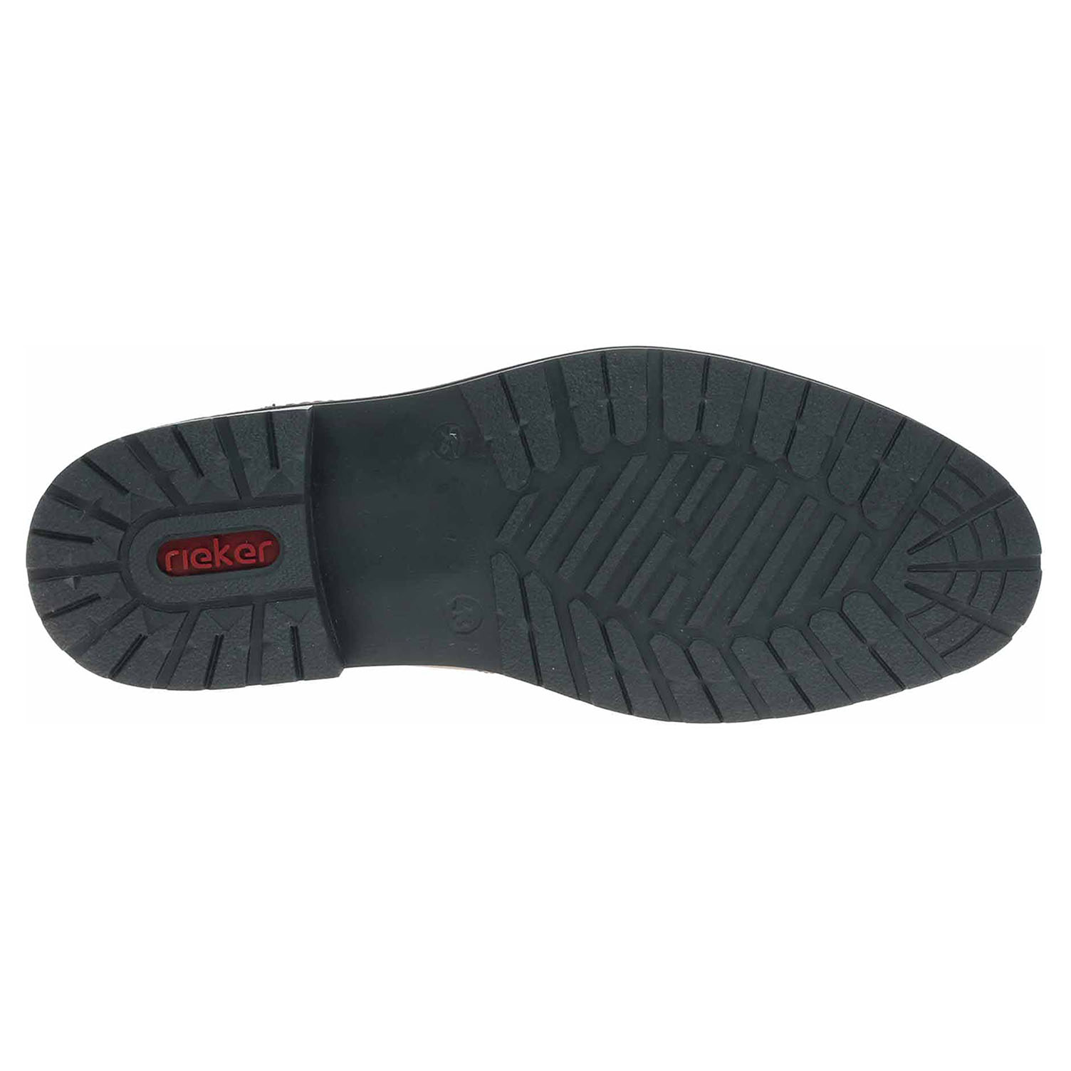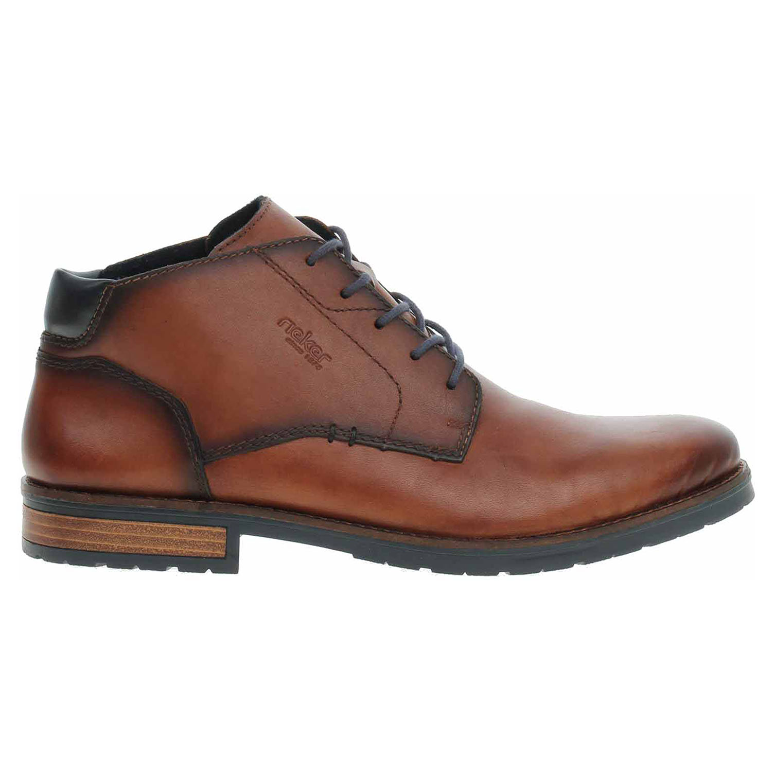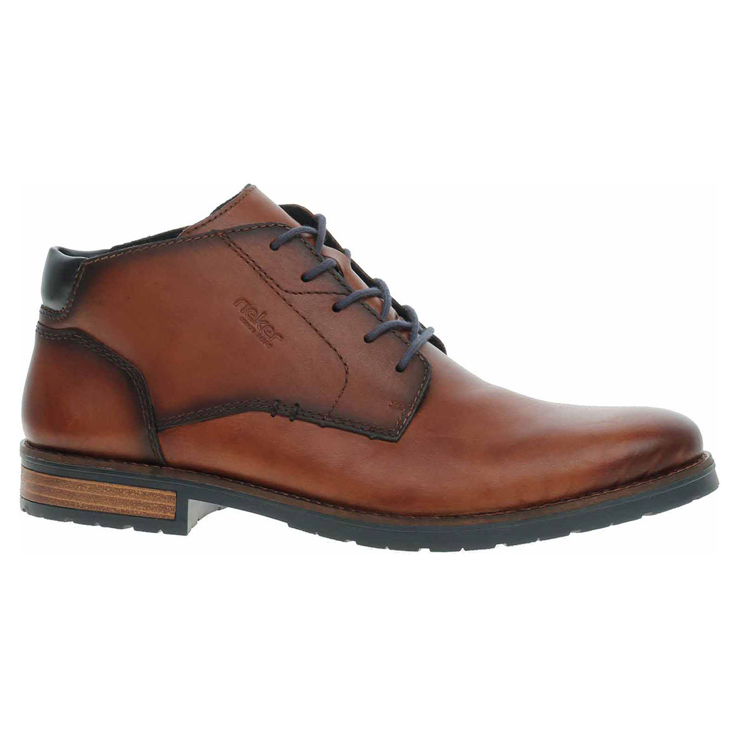 Boty Rieker - lepená pánská kotníková obuv se šněrováním má svrškem z usně a je vyteplená textilní podšívkou. Podpatek je vysoký 2,7 cm. Podešev je flexibilní a díky systému Antistress skvěle tlumí nárazy a otřesy. Lepená obuv - pevnost lepeného spoje může být negativně ovlivněna promáčením nebo propocením, event. opakovaným používáním nedostatečně vysušené obuvi. Při neopatrné chůzi může dojít k mechanickému uvolnění lepeného spoje - ukopnutí.