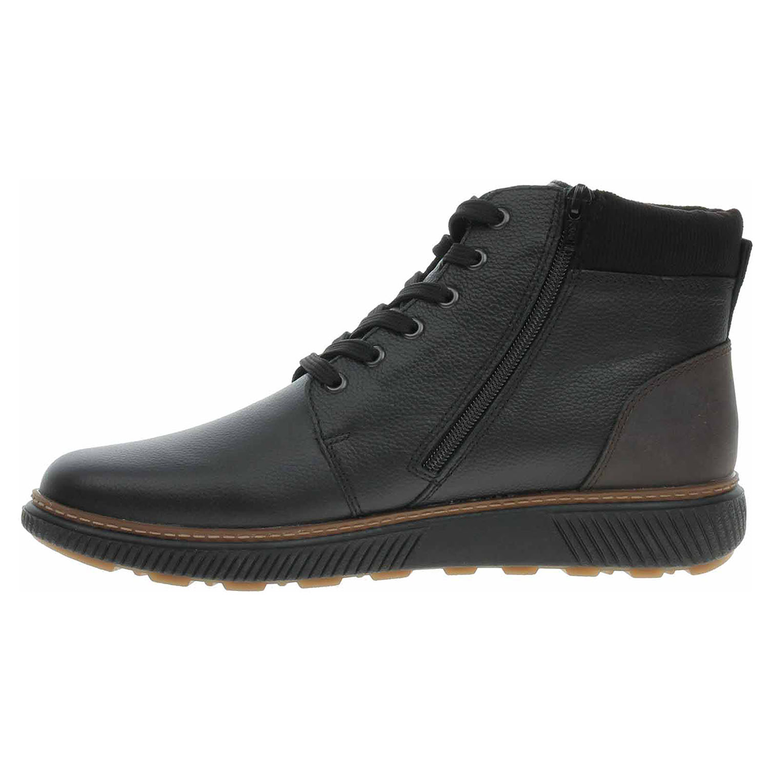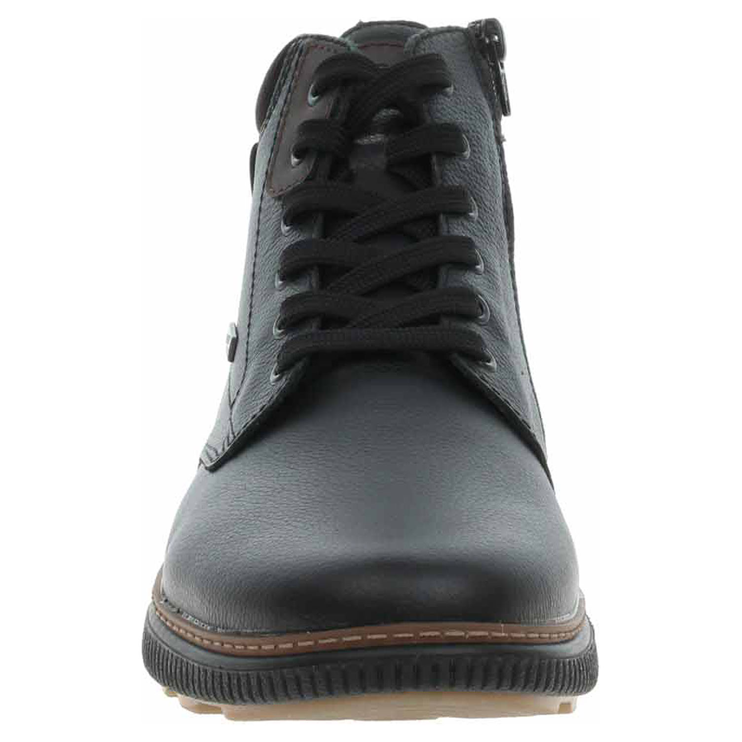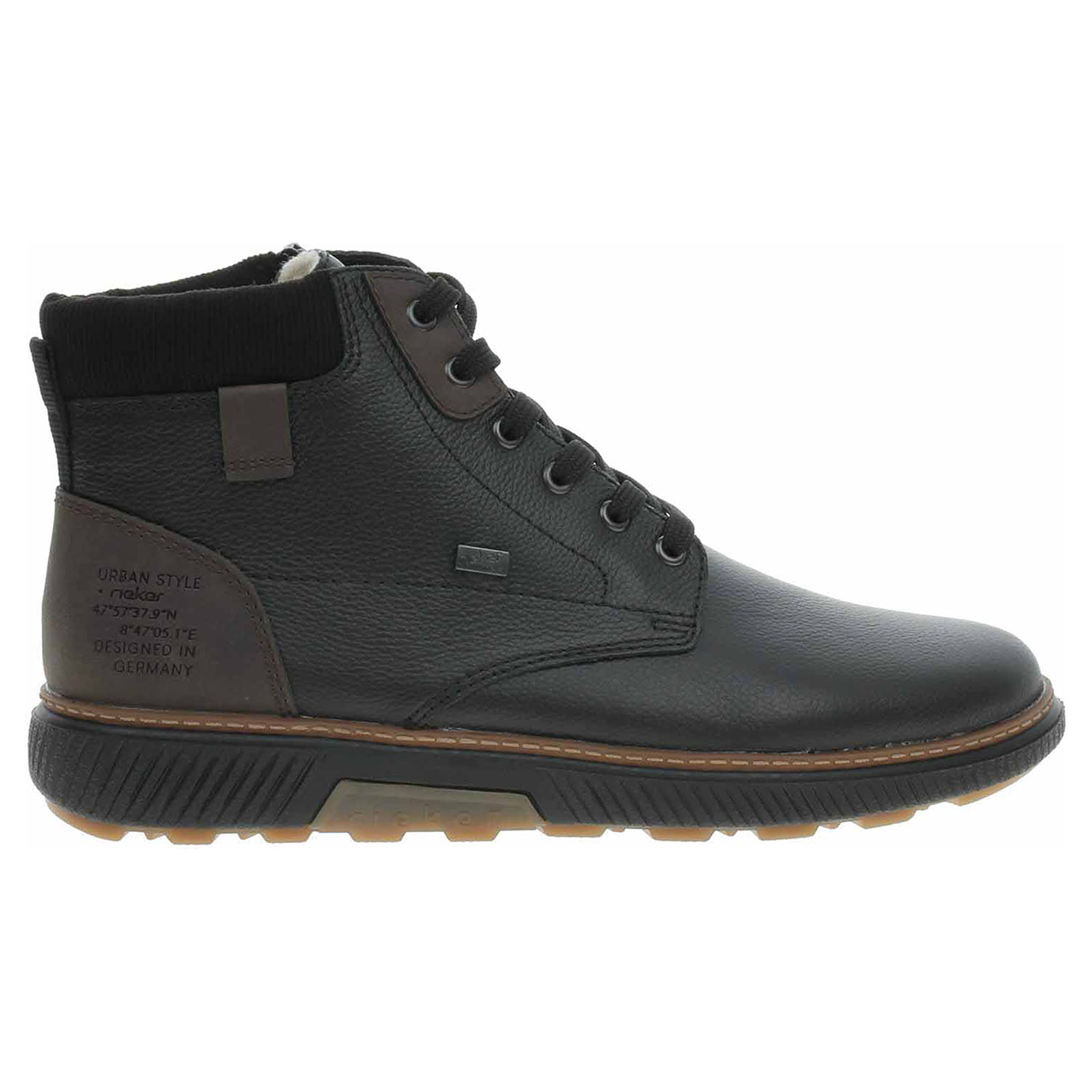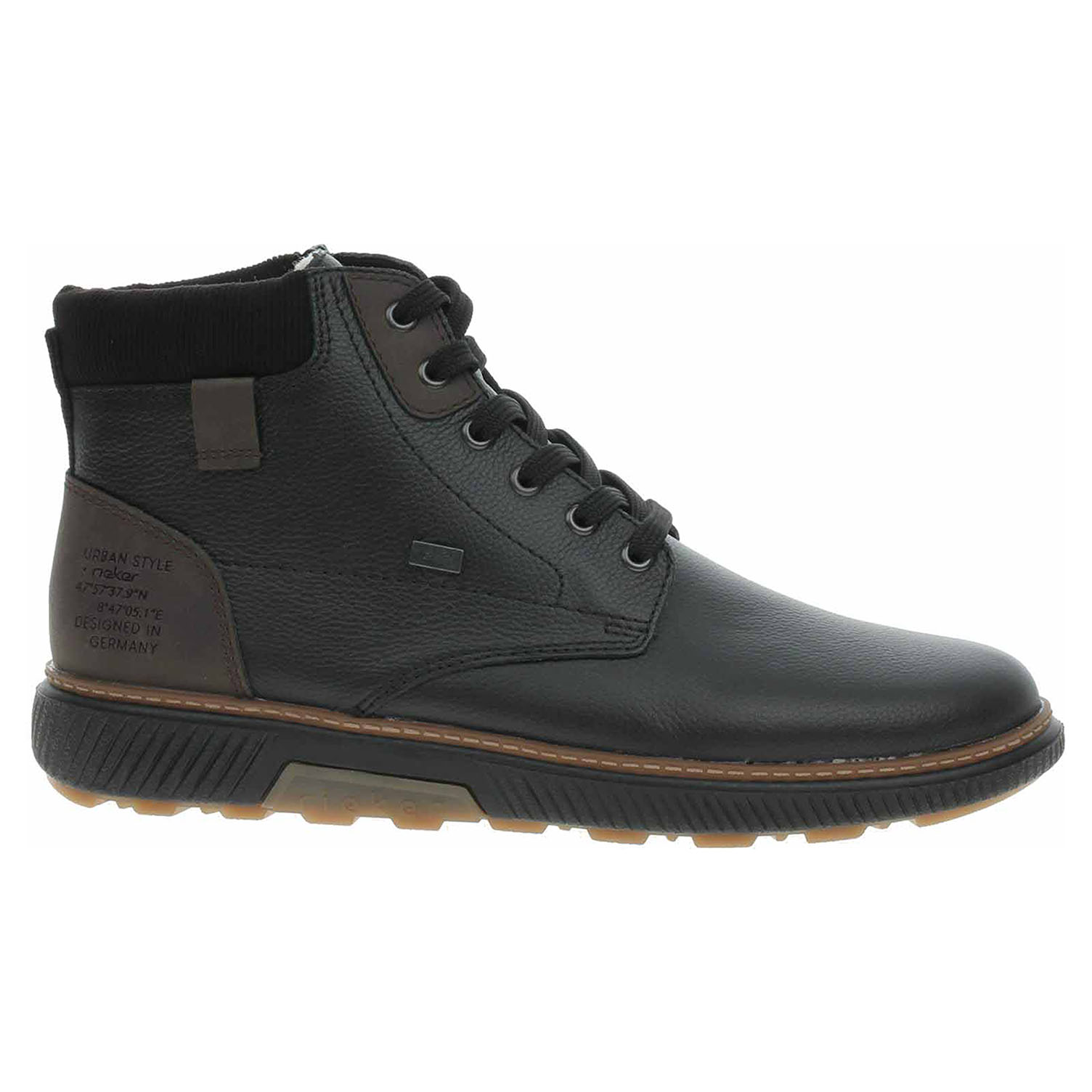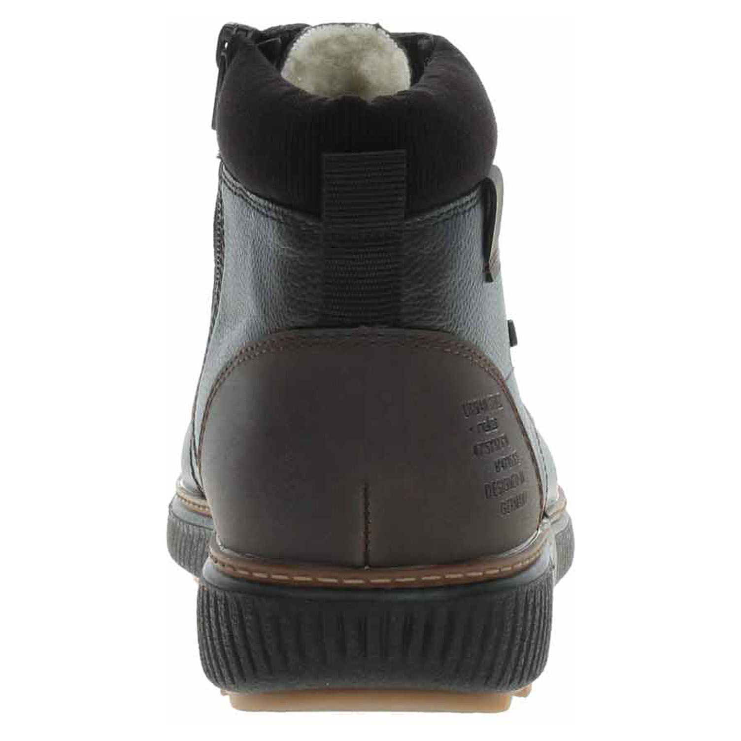 Boty Rieker - lepená pánská kotníková obuv nadměrné šíře H se svrškem z usně, s tmavším dílem na opatku ze syntetiky a s úpletem okolo kotníku je vyteplená podšívkou ze střižní ovčí vlny a je vybavená vodoodpudivou membránou RiekerTex a vyndavací stélkou MemoSoft (maximálně změkčuje došlap a zvyšuje pohodlí v obuvi) s textilní nášlapnou vrstvou. Pohodlné nazouvání zajišťuje šněrování na nártu a zip na vnitřní straně. EXTRA WIDE – boty jsou širšího střihu, tvar boty je přizpůsobený chodidlu pro vytvoření dostatečného prostoru v oblasti přední části chodidla. Klínek je vysoký 3,6 cm. Podešev je flexibilní a díky systému Antistress (lehkost, pružnost, prostornost a vynikající absorpce nárazů) Vám obuv zajistí pohodlí při každém kroku. Lepená obuv - pevnost lepeného spoje může být negativně ovlivněna promáčením nebo propocením, event. opakovaným používáním nedostatečně vysušené obuvi. Při neopatrné chůzi může dojít k mechanickému uvolnění lepeného spoje - ukopnutí.