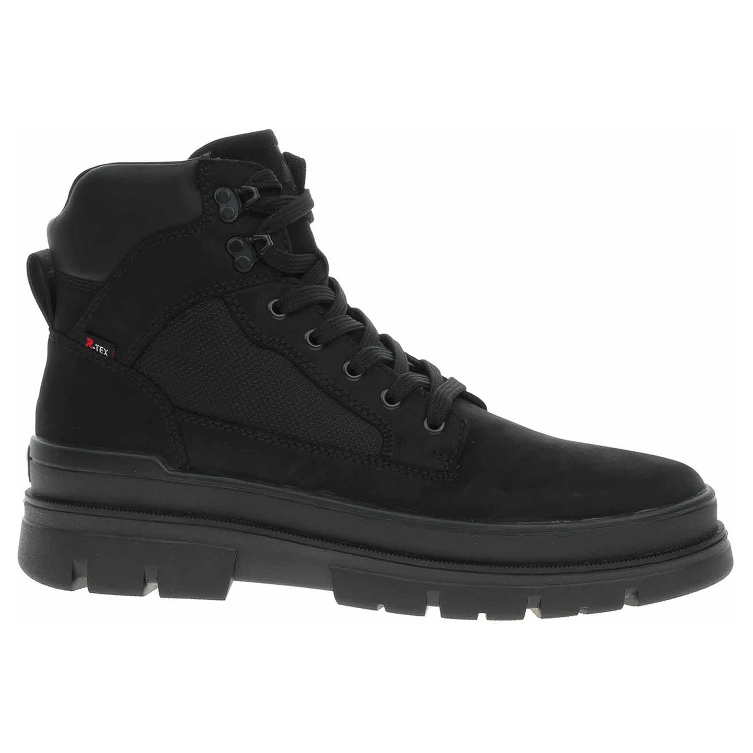 Boty Rieker - lepená pánská kotníková obuv nadměrné šíře H řady Revolution se svrškem kombinovaným useň/syntetika je vyteplená podšívkou z ovčí vlny a je vybavená vodoodpudivou membránou R-TEX® a vyndavací pěnovou stélkou Walk Warm (složení: vlněná nášlapná vrstva, termoizolační fólie a patní absorbér), kterou můžete vyjmout, vyměnit nebo vyvětrat. Pohodlné nazouvání zajišťuje zip na vnitřní straně a šněrování na nártu. Rieker R-EVOLUTION je nová řada moderní sportovní obuvi s obrovským důrazem na použité technologie a na komforní pohodlí i při celodenním nošení. Podpatek je vysoký 4,5 cm a platforma je vysoká 3,- cm. Lepená obuv - pevnost lepeného spoje může být negativně ovlivněna promáčením nebo propocením, event. opakovaným používáním nedostatečně vysušené obuvi. Při neopatrné chůzi může dojít k mechanickému uvolnění lepeného spoje - ukopnutí.